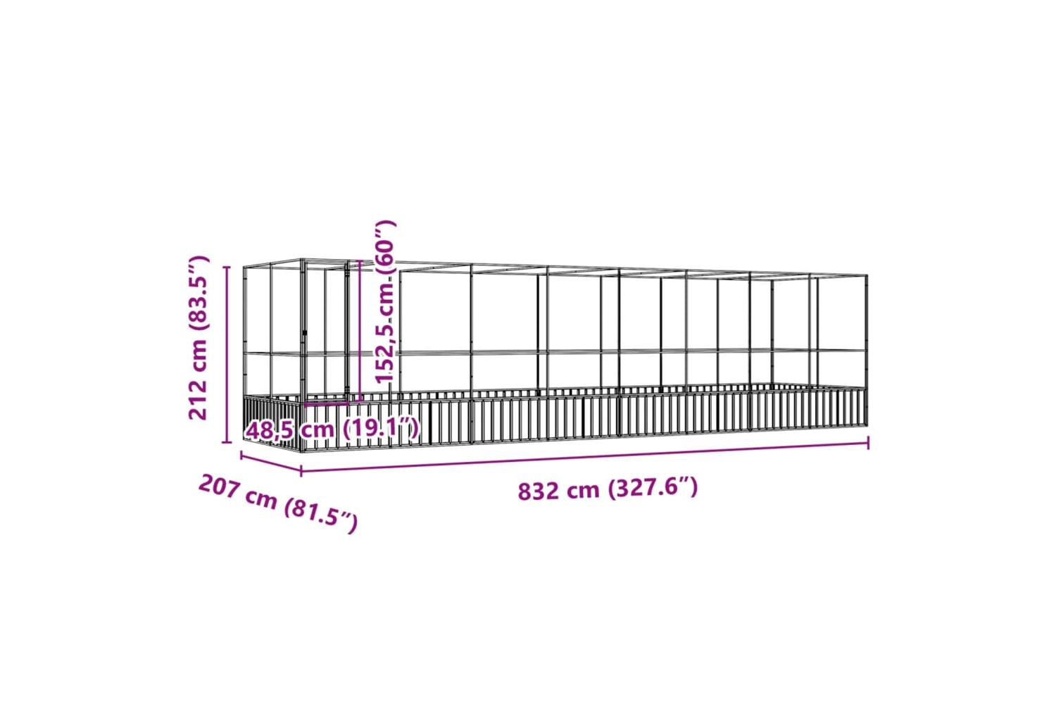 - Overall dimensions: 832 x 207 x 212 cm (W x D x H)