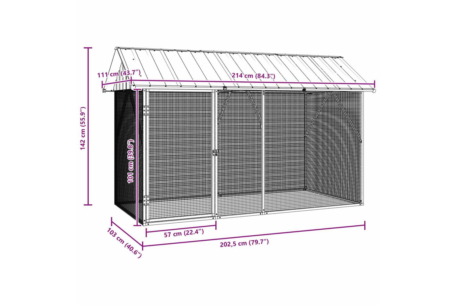 This Outdoor Bird Cage offers a modern design that prioritizes simplicity, functionality, and aesthetic appeal. Perfect for any garden or terrace, this enclosure provides a reliable solution for pet birds, showcasing a stylish rectangular shape made from robust materials. Its anthracite color scheme ensures it complements natural outdoor settings while being a practical and pet-friendly enclosure for avian companions, ensuring both safety and elegance.