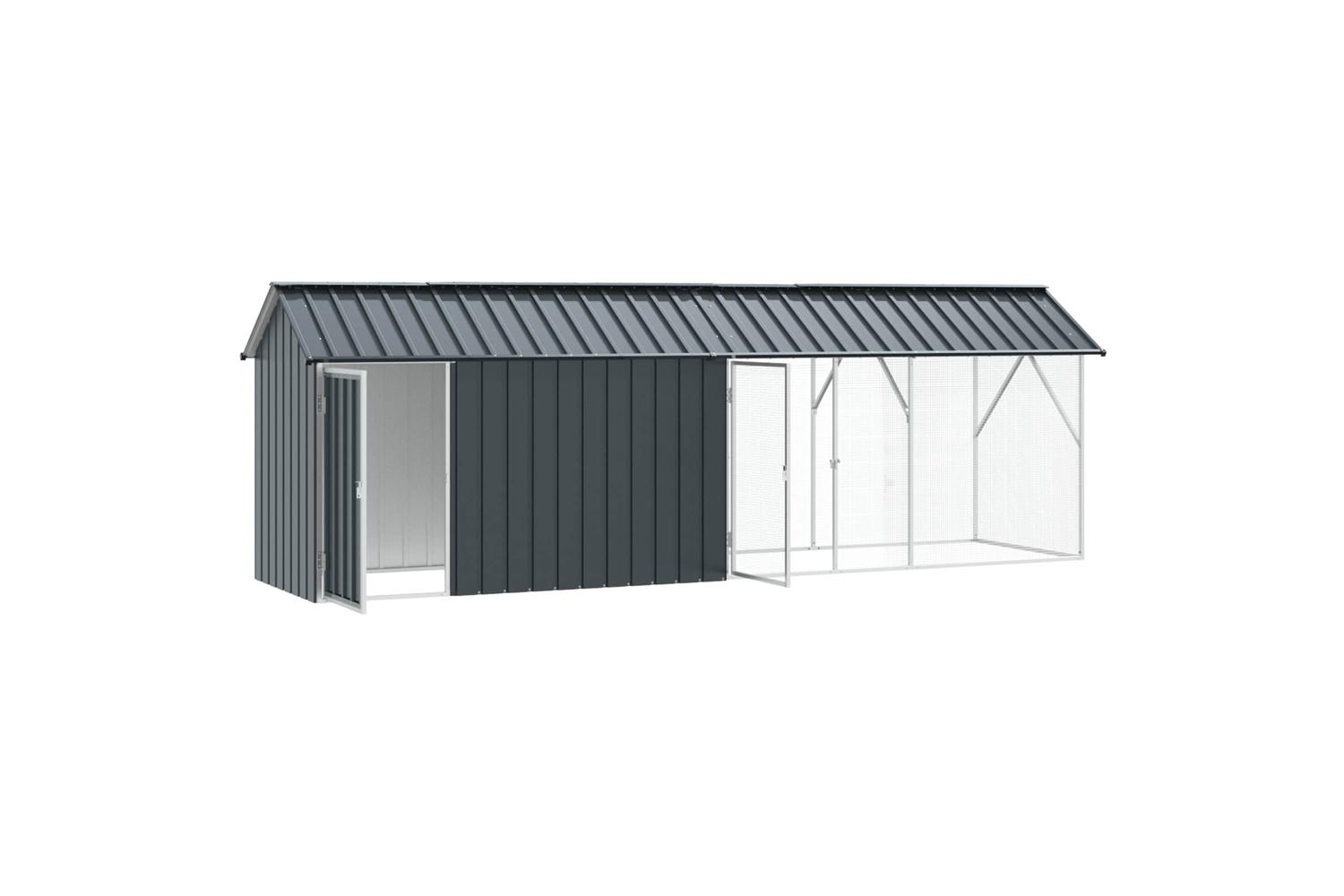 This elegant outdoor bird cage is a harmonious blend of modern design and practical functionality, designed to transform your garden or terrace into a charming avian haven. Crafted from robust galvanized steel, this sleek, rectangular enclosure offers a pristine and ethereal ambiance that enhances any outdoor space. Its anthracite finish adds a sophisticated touch, while the spacious design accommodates various bird types, fostering a vibrant and lively environment for your feathered companions.