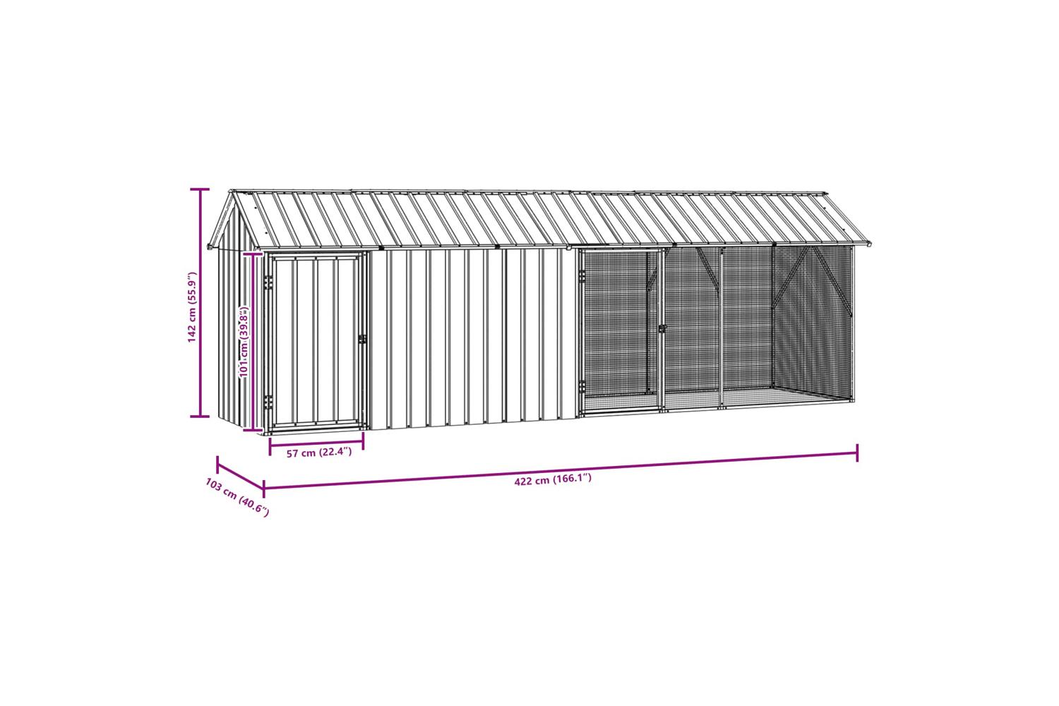 - Overall dimensions: 422 x 103 x 142 cm (L x W x H)