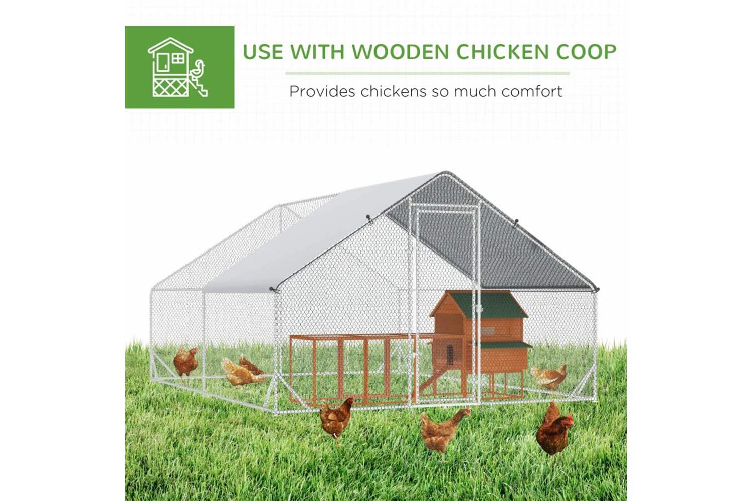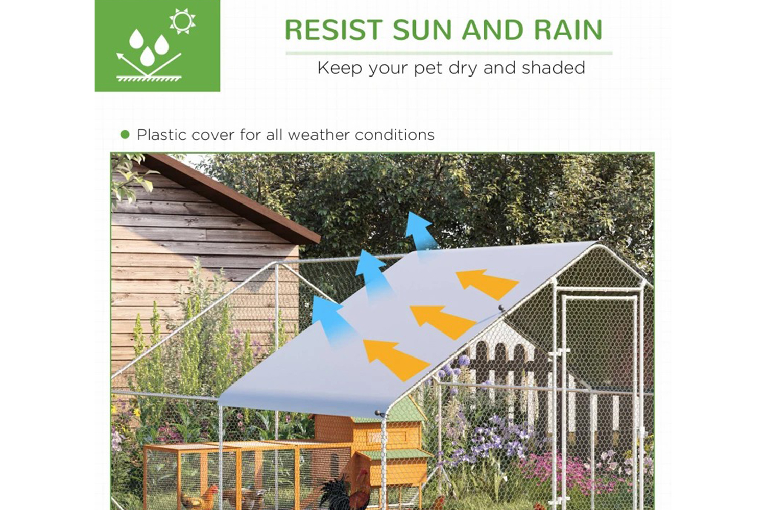 - Use the chicken house cover to keep your feathered friends shaded