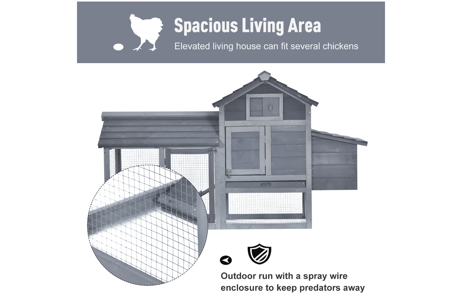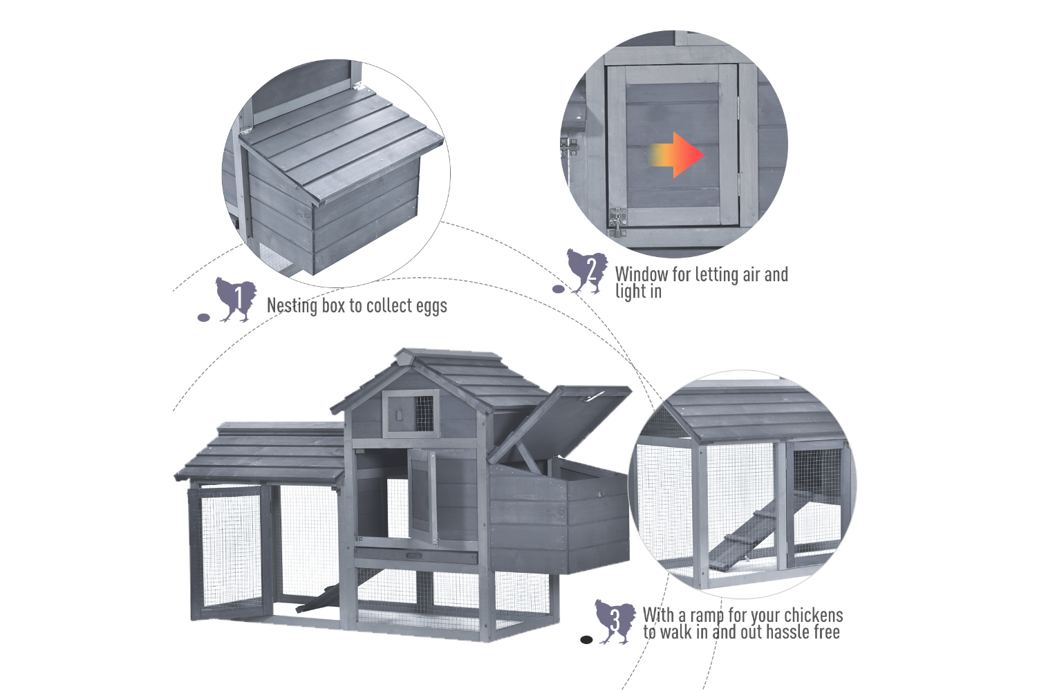 • Non-slip ramp allows chickens to easily enter the raised house