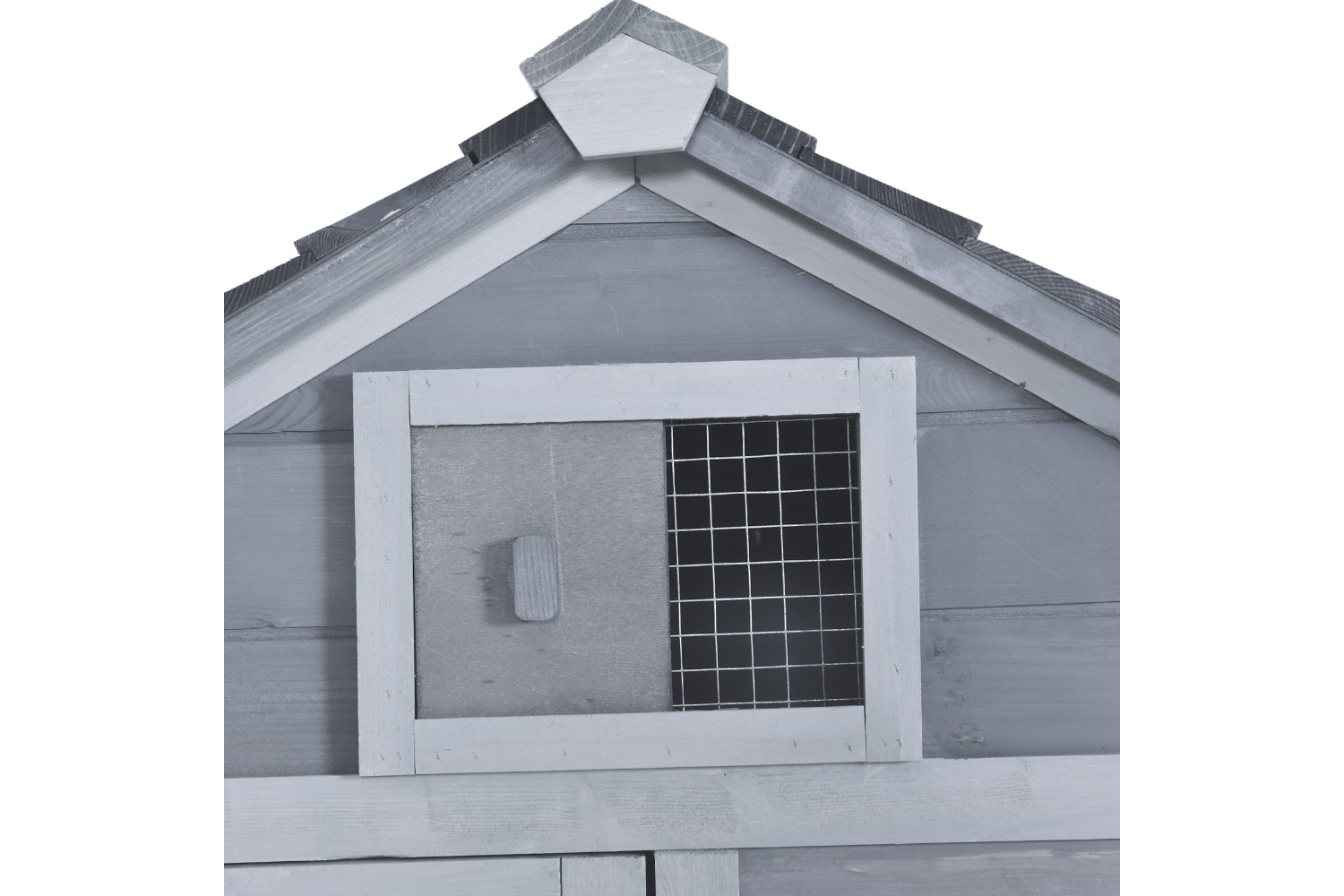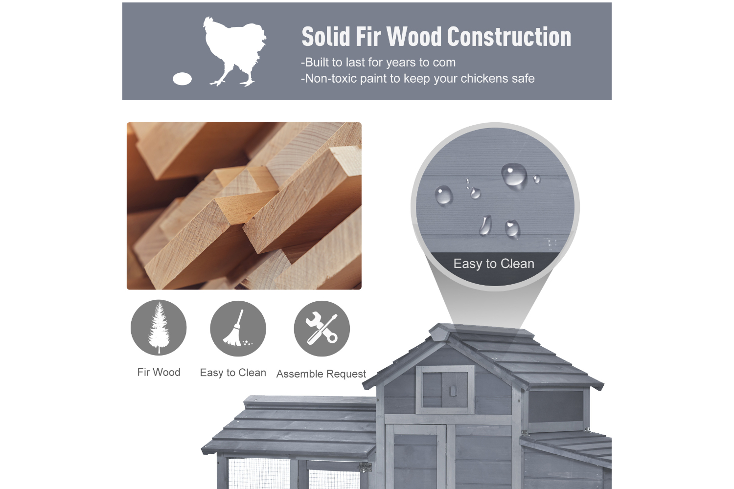 • Quality fir wood construction with elevated house, nesting box, run, ramp, and doors