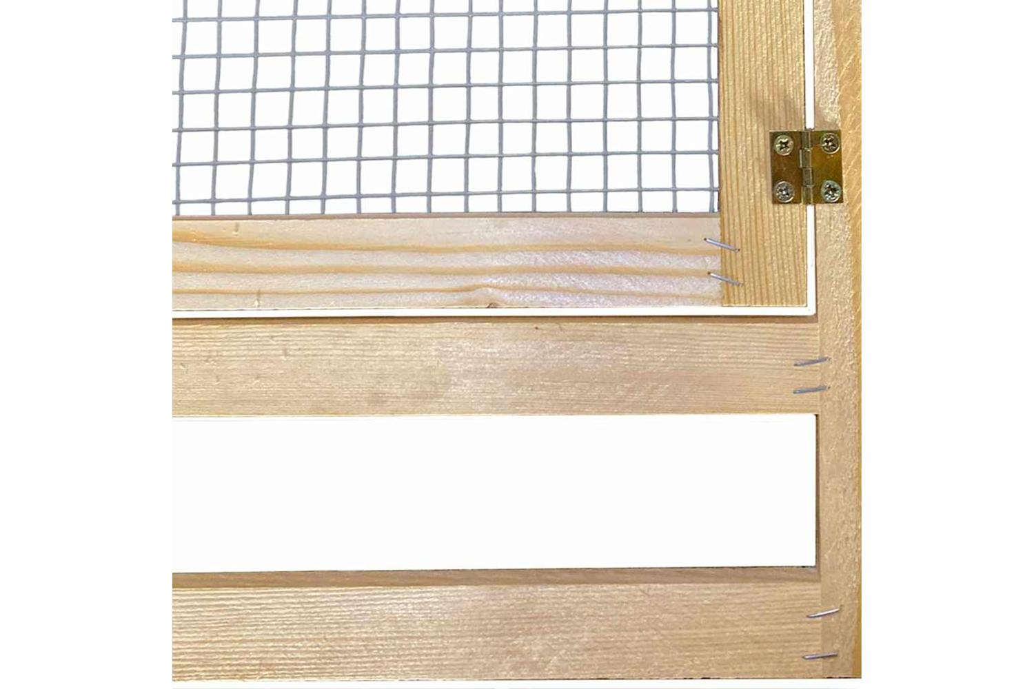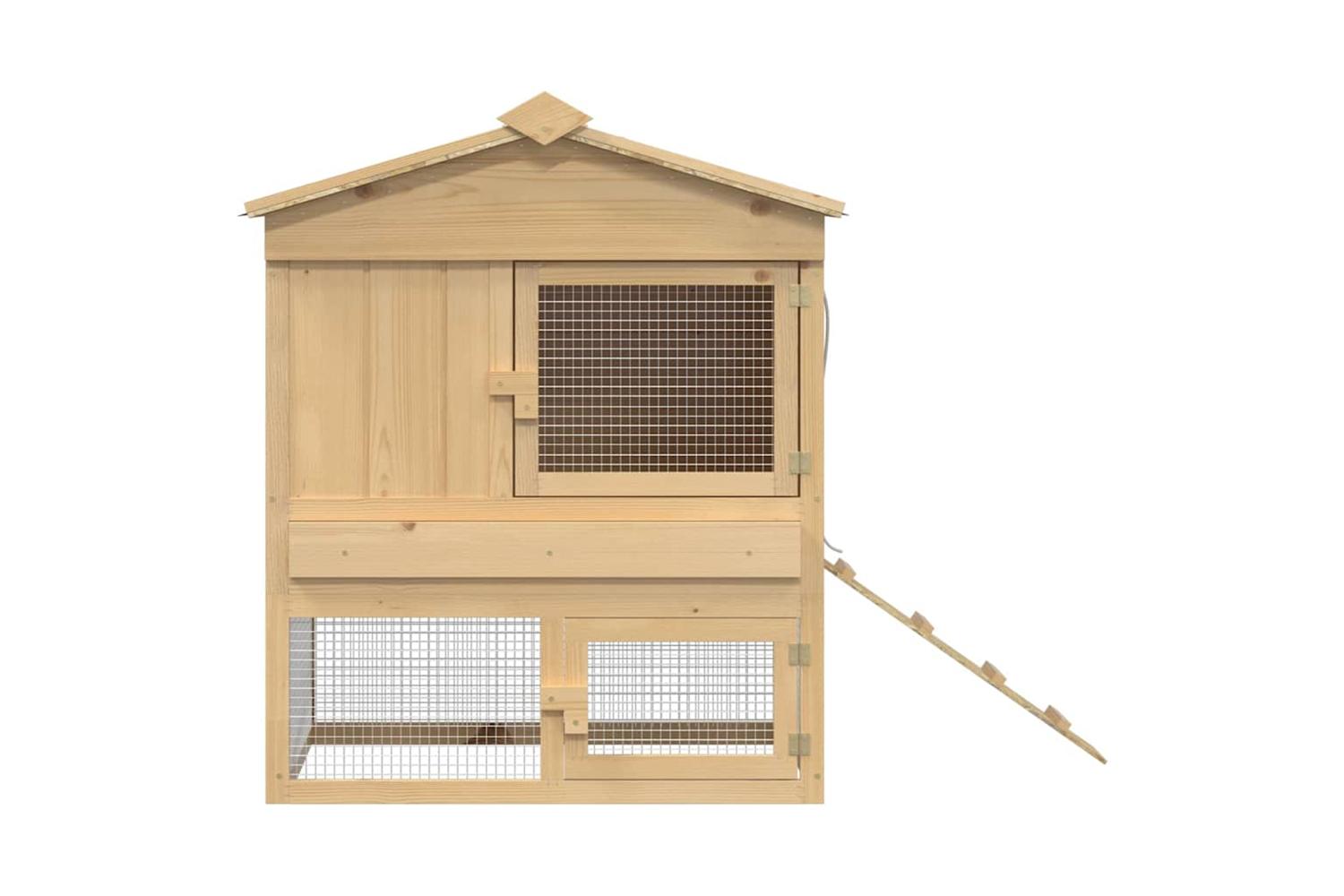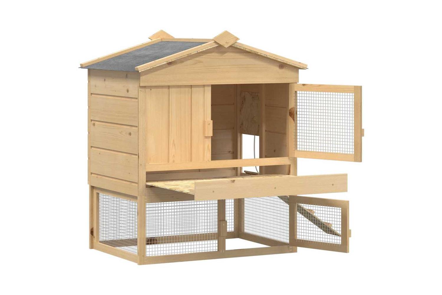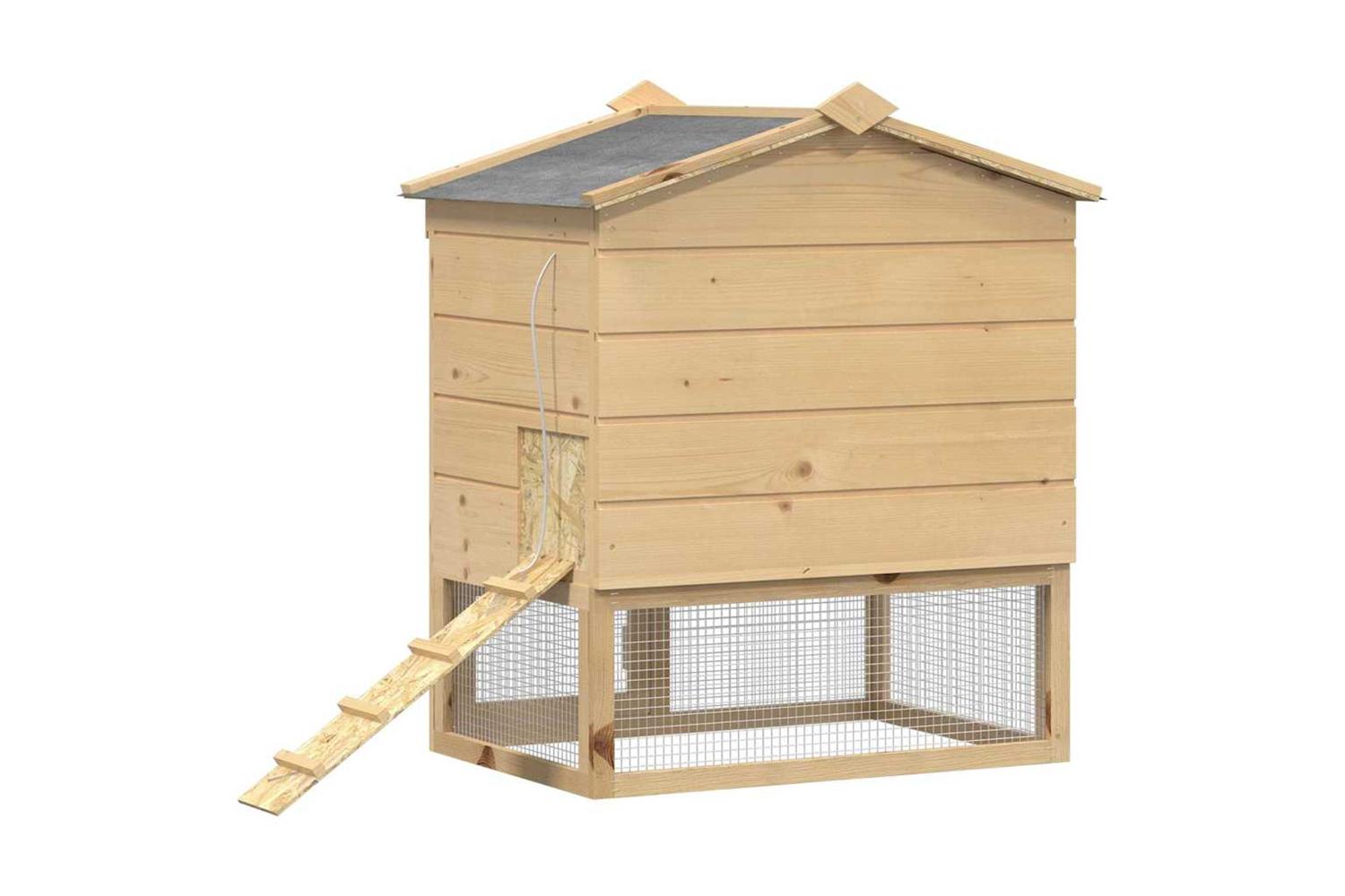 - Materials: The coop is crafted from solid pine wood, chosen for its robustness and natural attractiveness. This material ensures the coop holds up against the weather and other elements, making it a lasting addition to any garden or terrace environment.