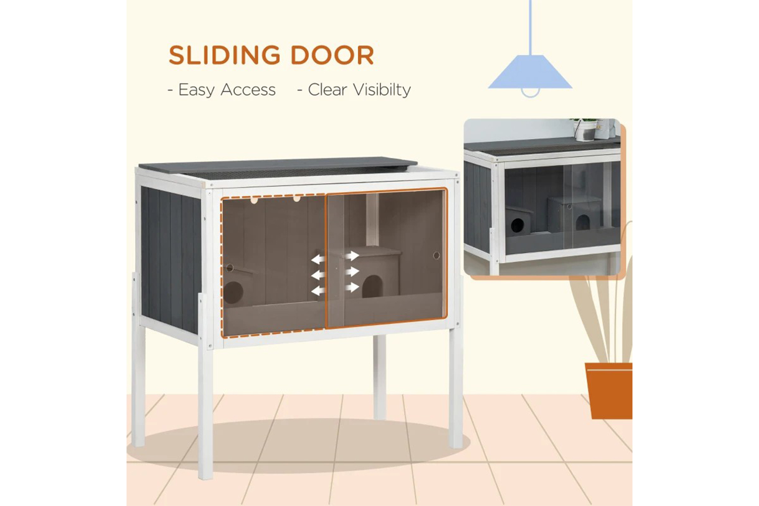 - Two acrylic sliding doors provides easy access, whilst letting you look into the cage