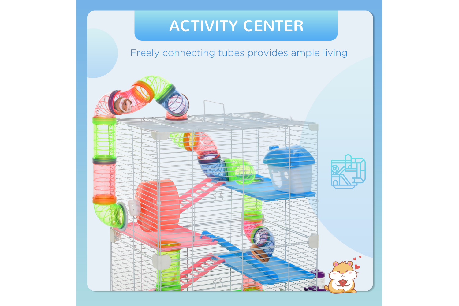 • Play tubing system add more fun and allows your small pet to move freely