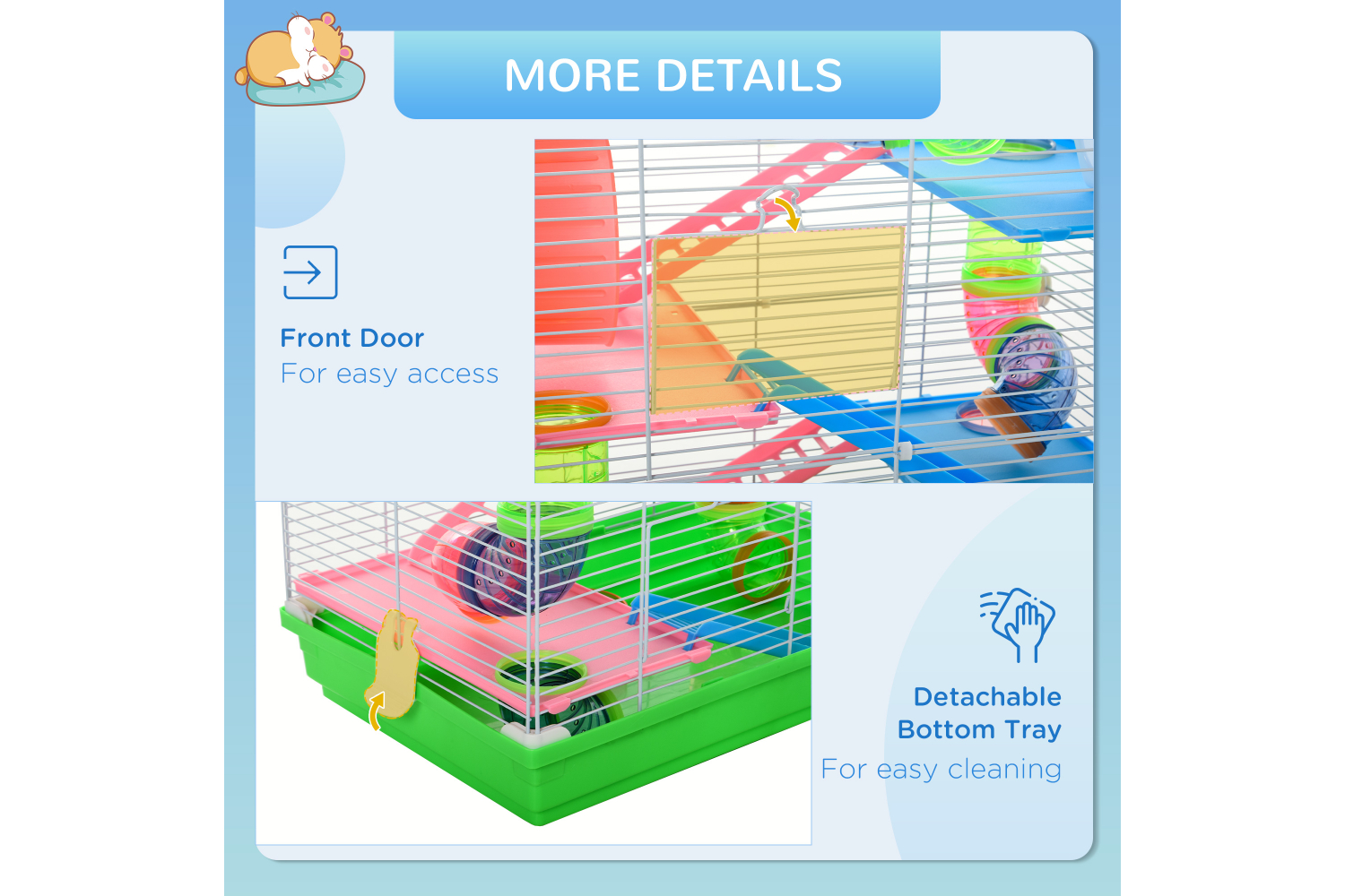 • The front door allows you access to your hamster easily