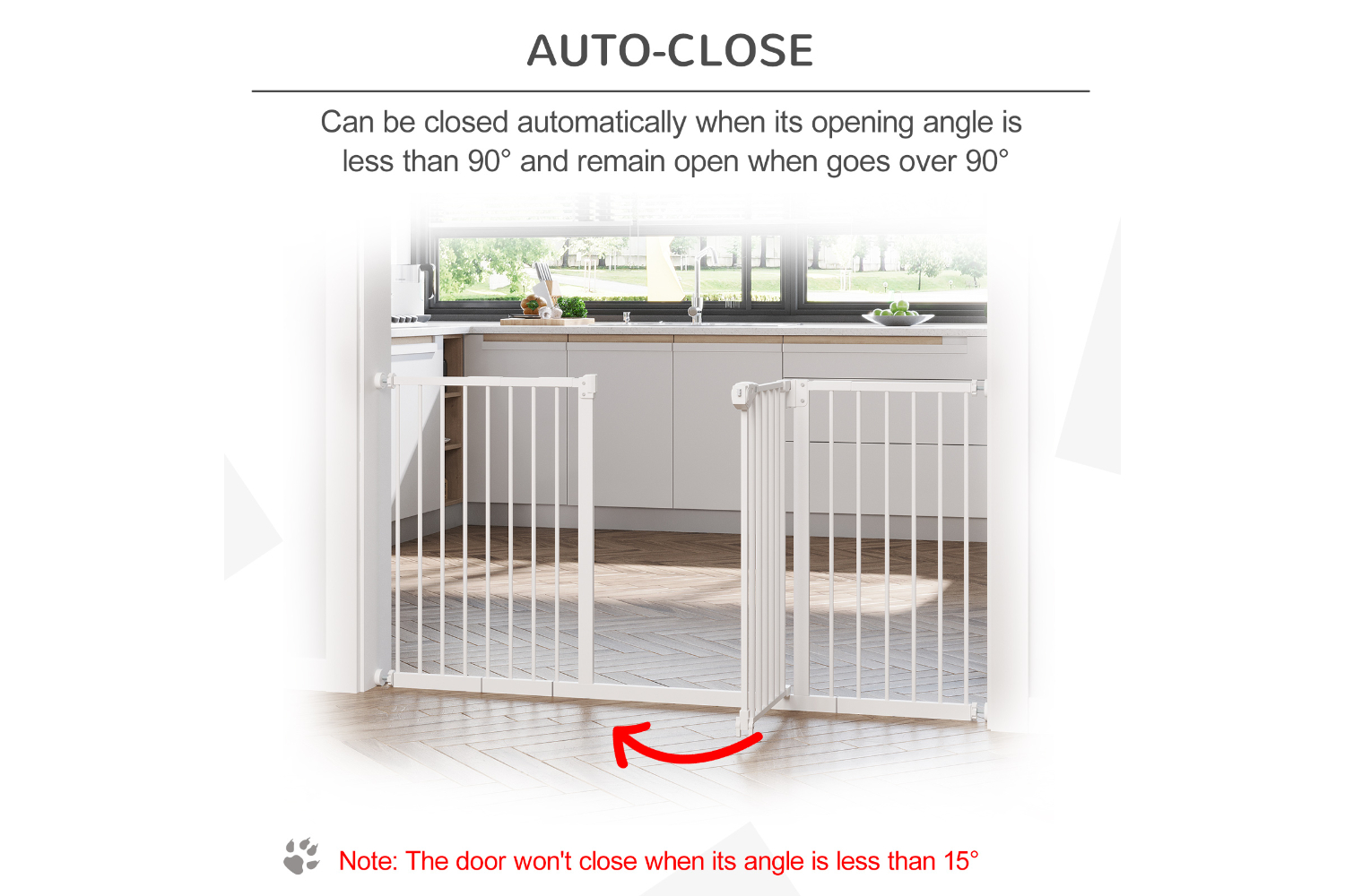 • When the opening angle is less than 90°, the door will close automatically