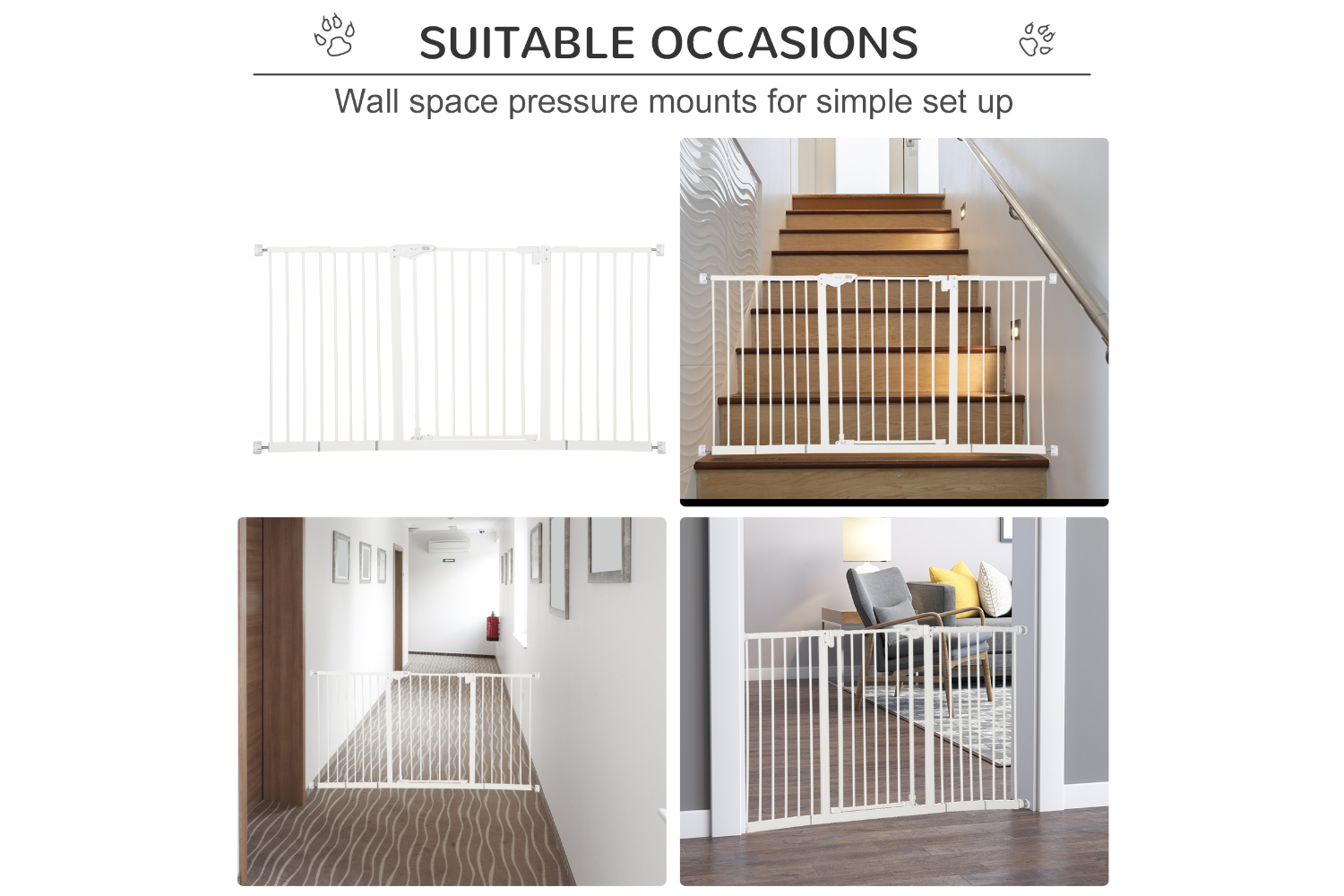 PawHut D06-096WT Pressure Fit Adjustable Pets Barrier | White