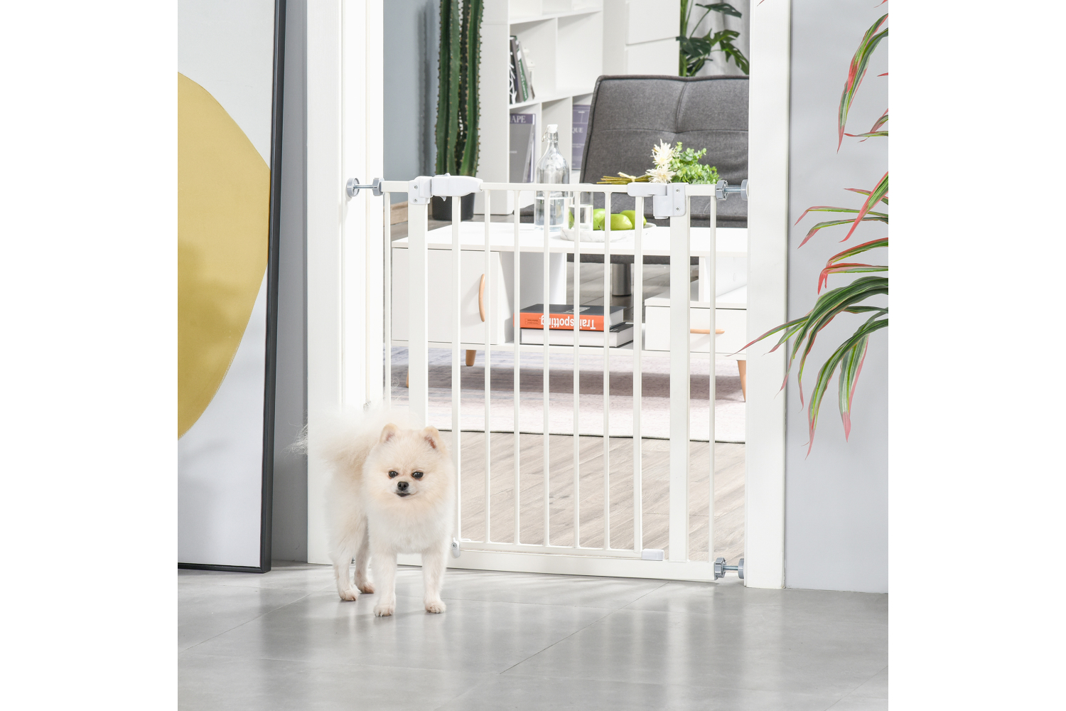 PawHut D06-097 Pressure Fitted Pet Safety Gate with Auto Close Double Lock | White