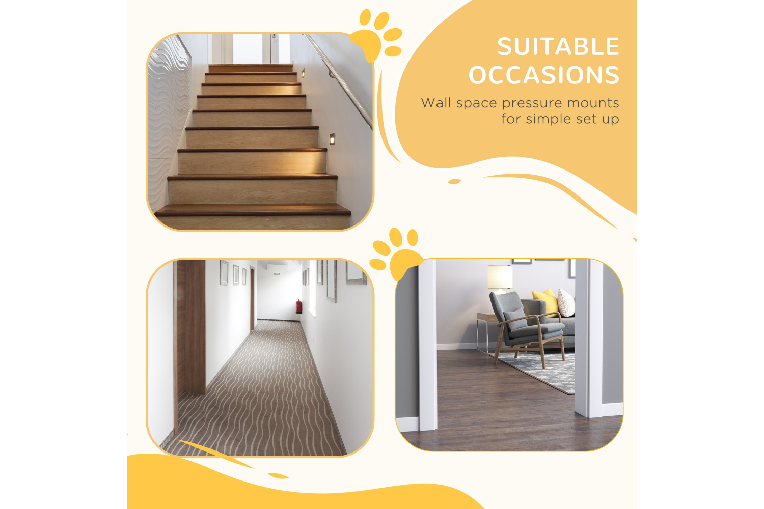 • Suitable for doorways, corridors, stairs, etc.