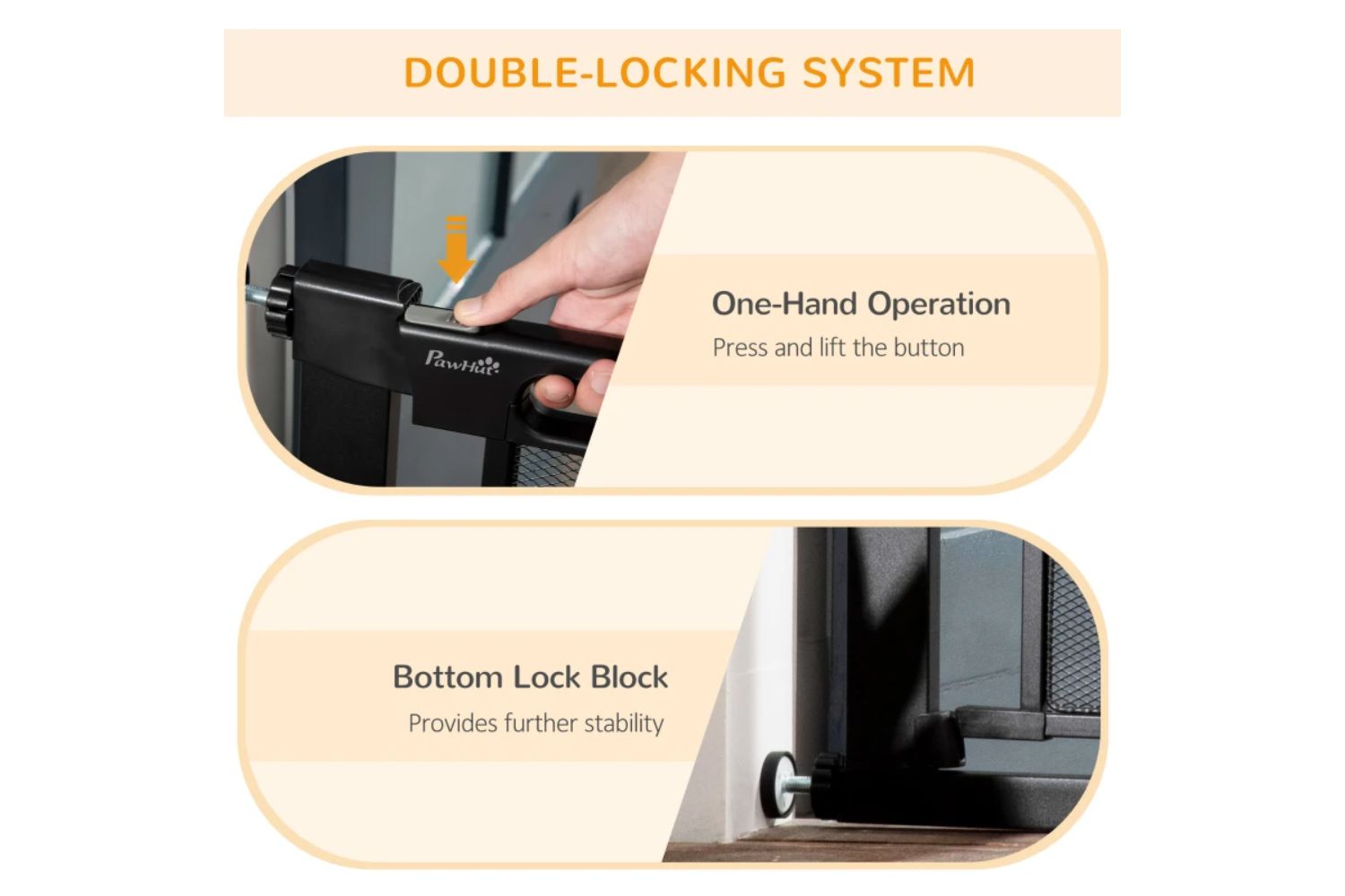 Keep dogs from restricted areas with this PawHut safety gate. Suitable for hallways, doorways and staircases, it has an adjustable width of 75-82cm – perfect for different sized openings. This pet gate automatically closes if it's open at less than 90° – no more worrying about leaving it slightly open. It's pressure-mounted, making it easy to set up; a safe and effective way to stop pets from going where they shouldn't.