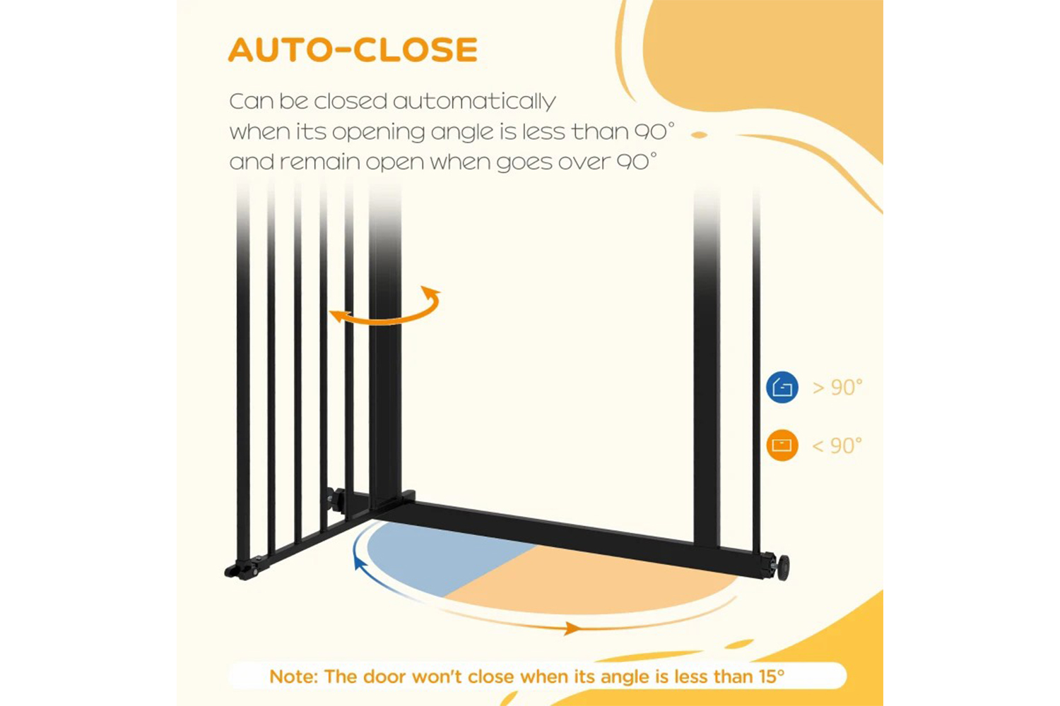 - When the opening angle is less than 90°, the door will close automatically