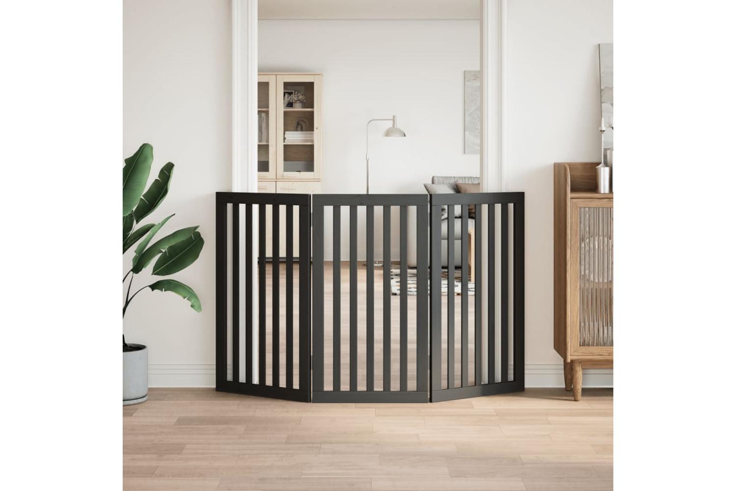 Vidaxl Dog Gate Foldable 3 Panels Black 150 Cm Poplar Wood