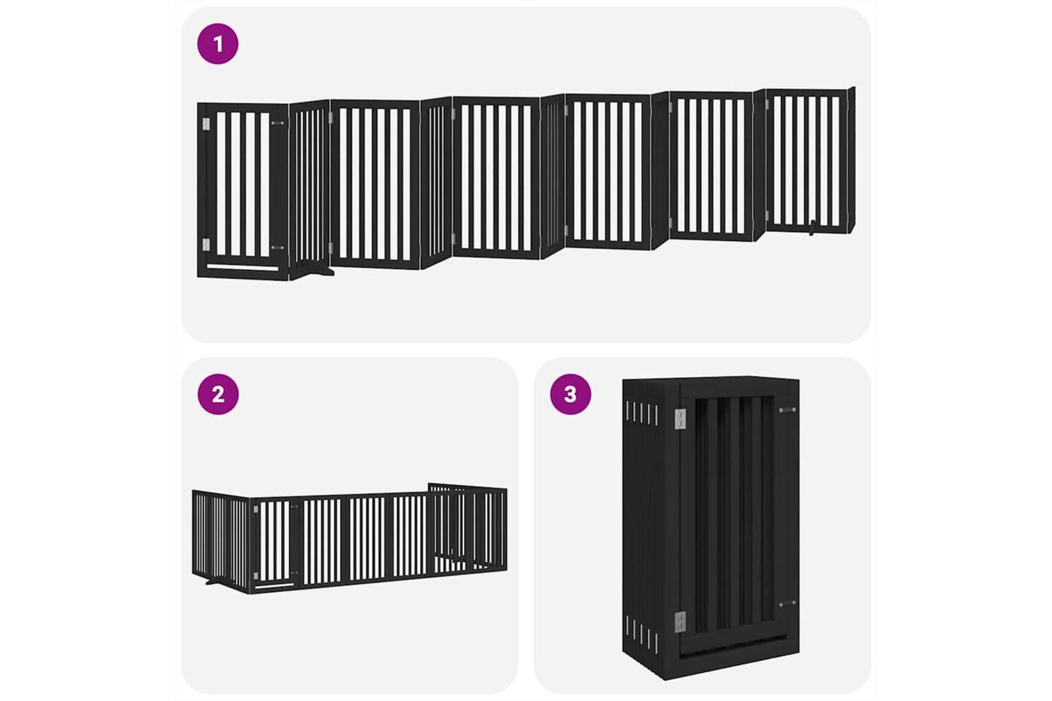 Vidaxl Dog Gate With Door Foldable 12 Panels Black 600 Cm Poplar Wood