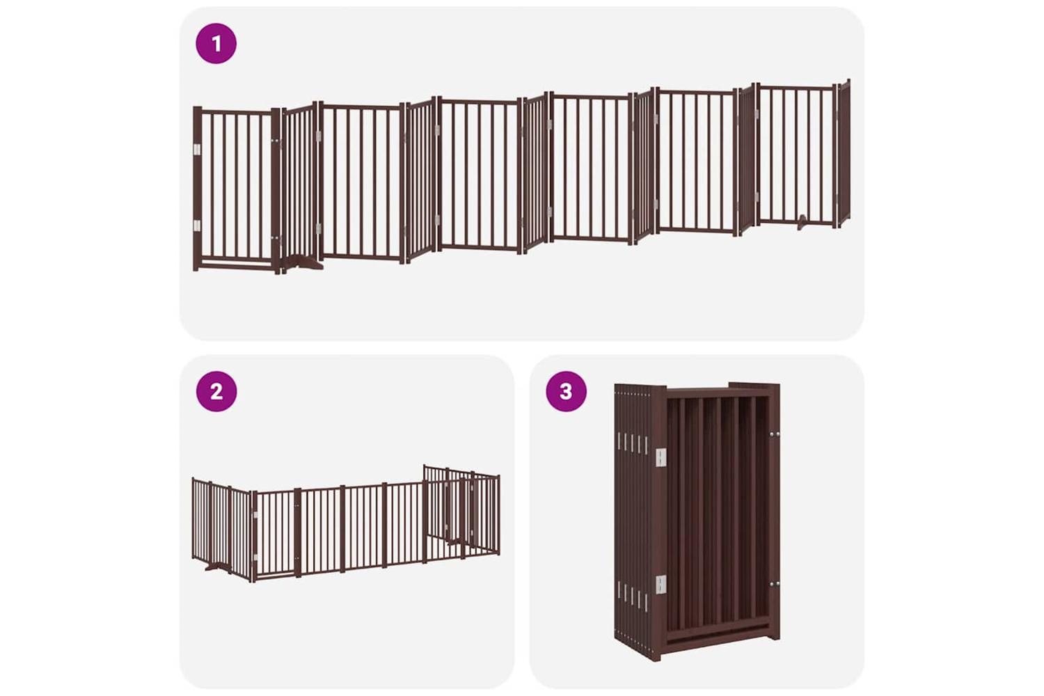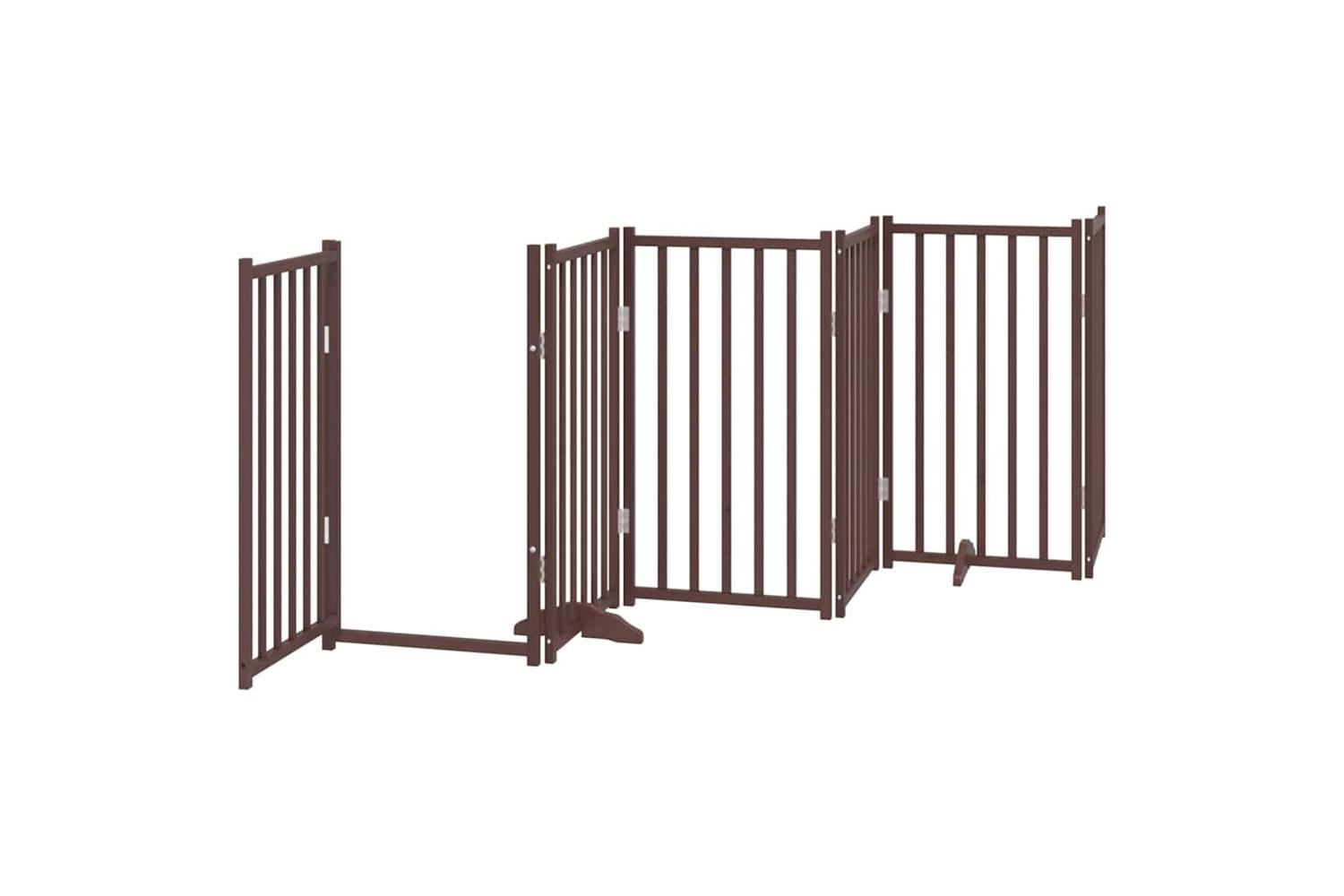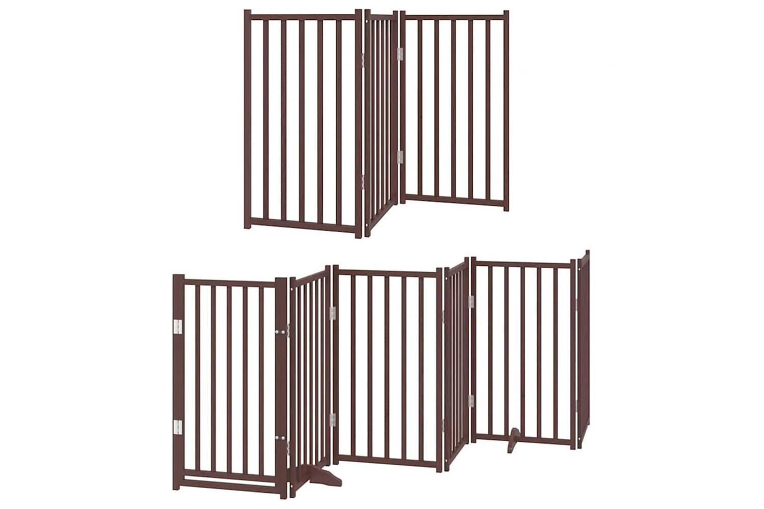 Vidaxl Dog Gate With Door Foldable 12 Panels Brown 600 Cm Poplar Wood