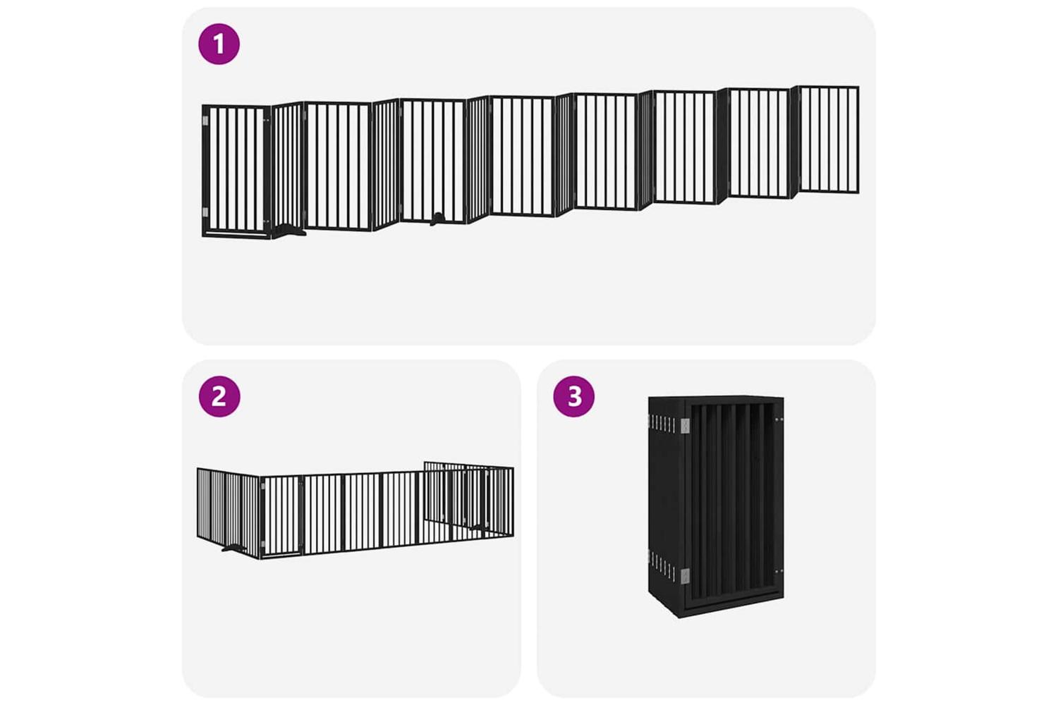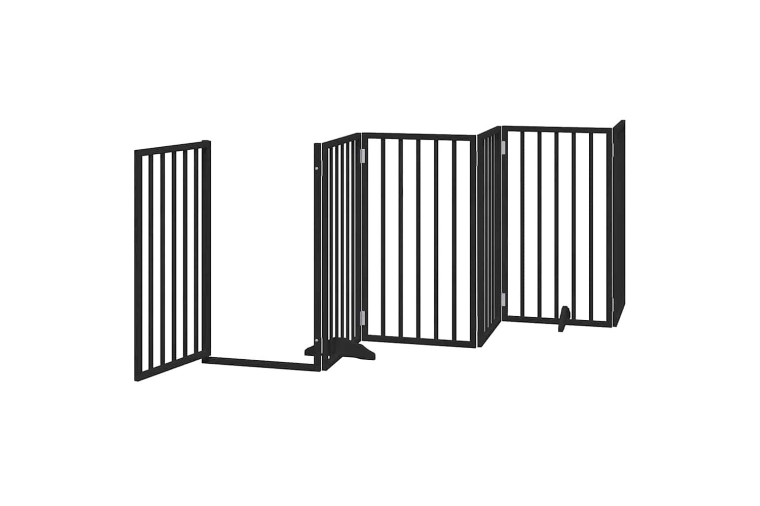 Vidaxl Dog Gate With Door Foldable 15 Panels Black 750 Cm Poplar Wood