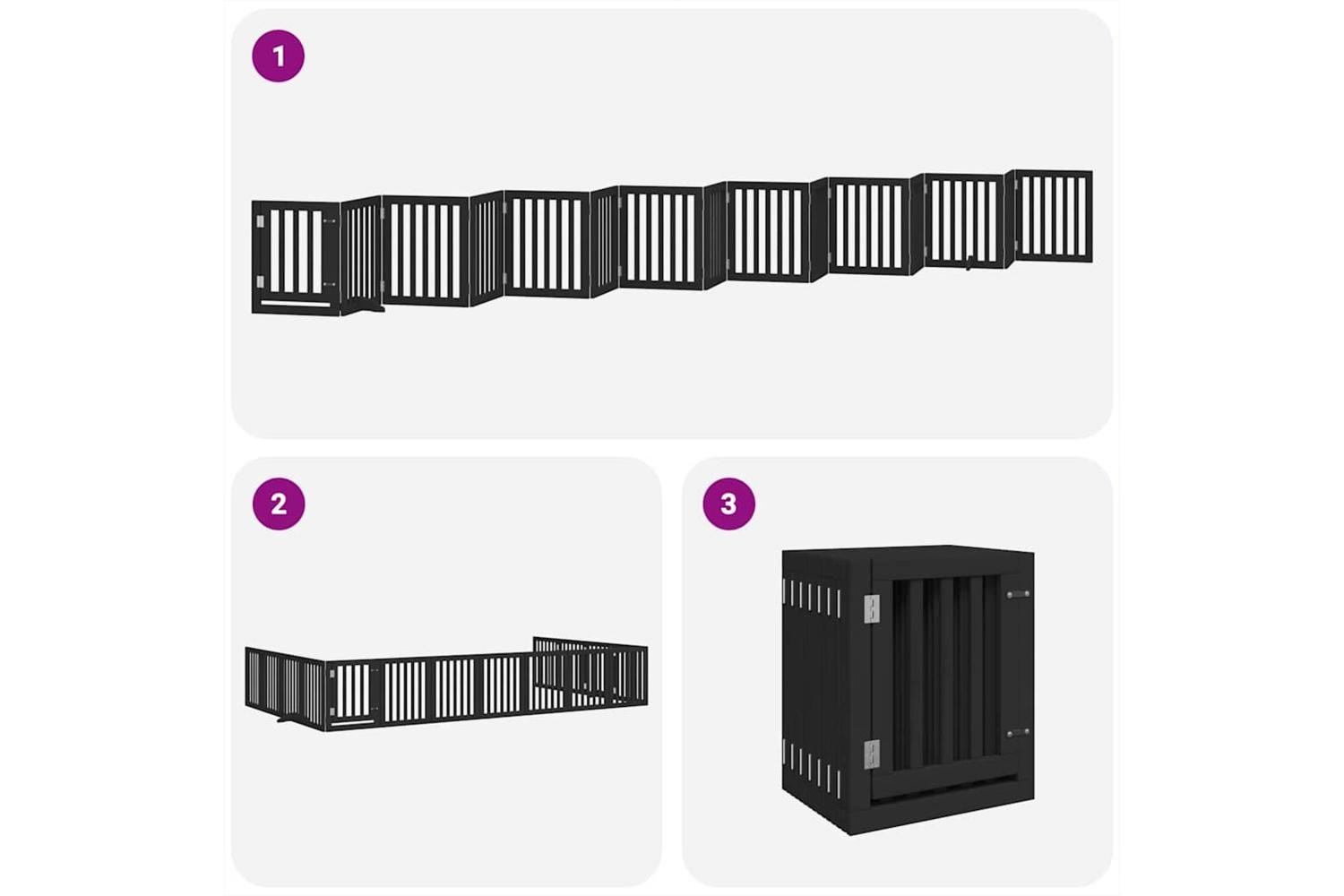 Vidaxl Dog Gate With Door Foldable 15 Panels Black 750 Cm Poplar Wood