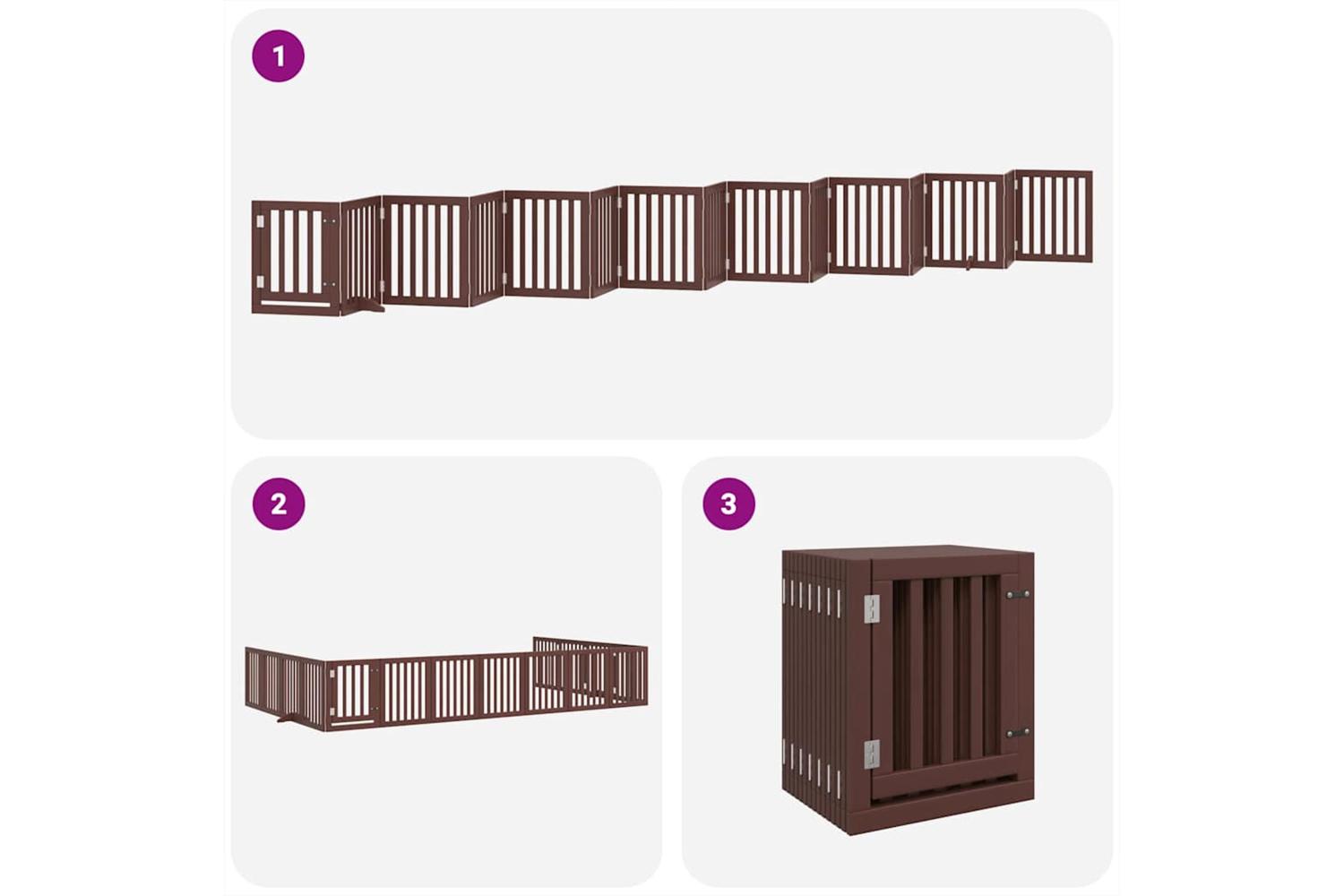 Vidaxl Dog Gate With Door Foldable 15 Panels Brown 750 Cm Poplar Wood