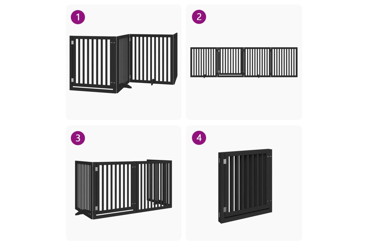 Vidaxl Dog Gate With Door Foldable 4 Panels Black 320 Cm Poplar Wood