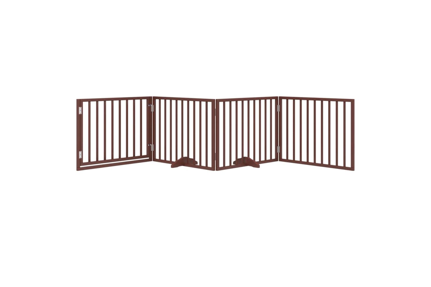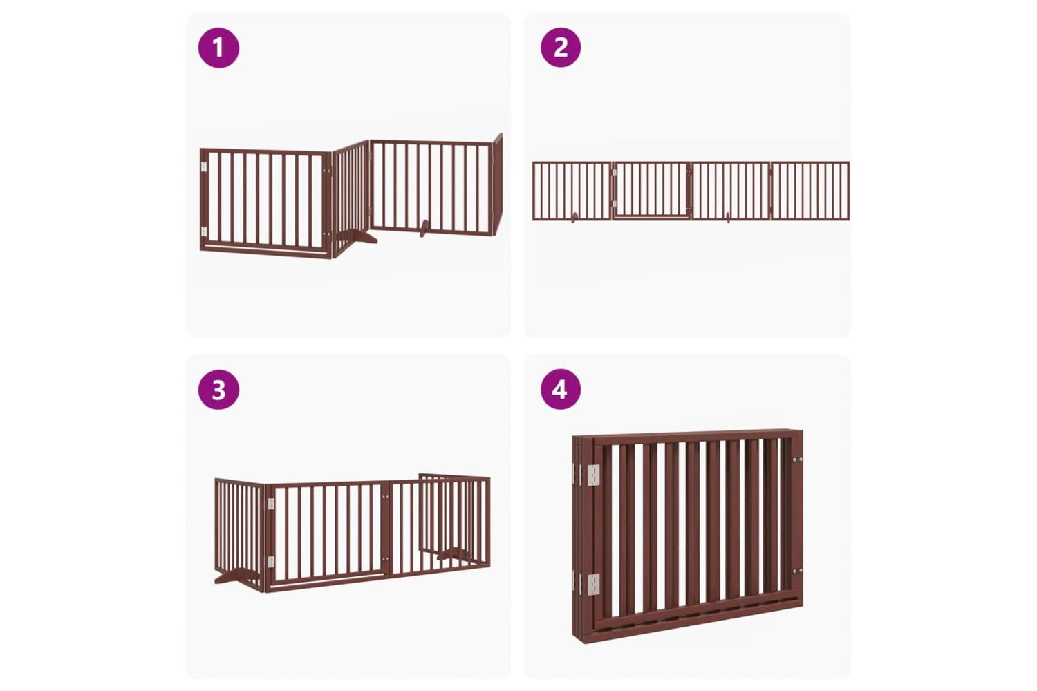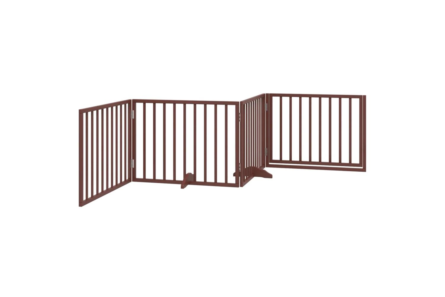 Vidaxl Dog Gate With Door Foldable 4 Panels Brown 320 Cm Poplar Wood
