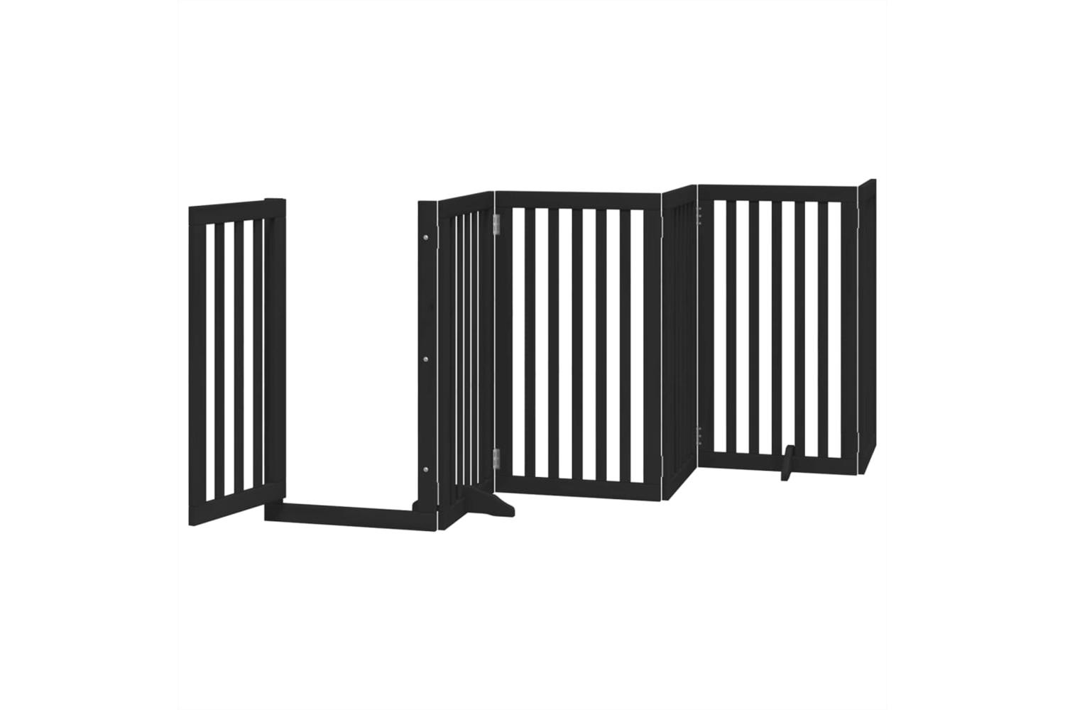 Vidaxl Dog Gate With Door Foldable 6 Panels Black 300 Cm Poplar Wood