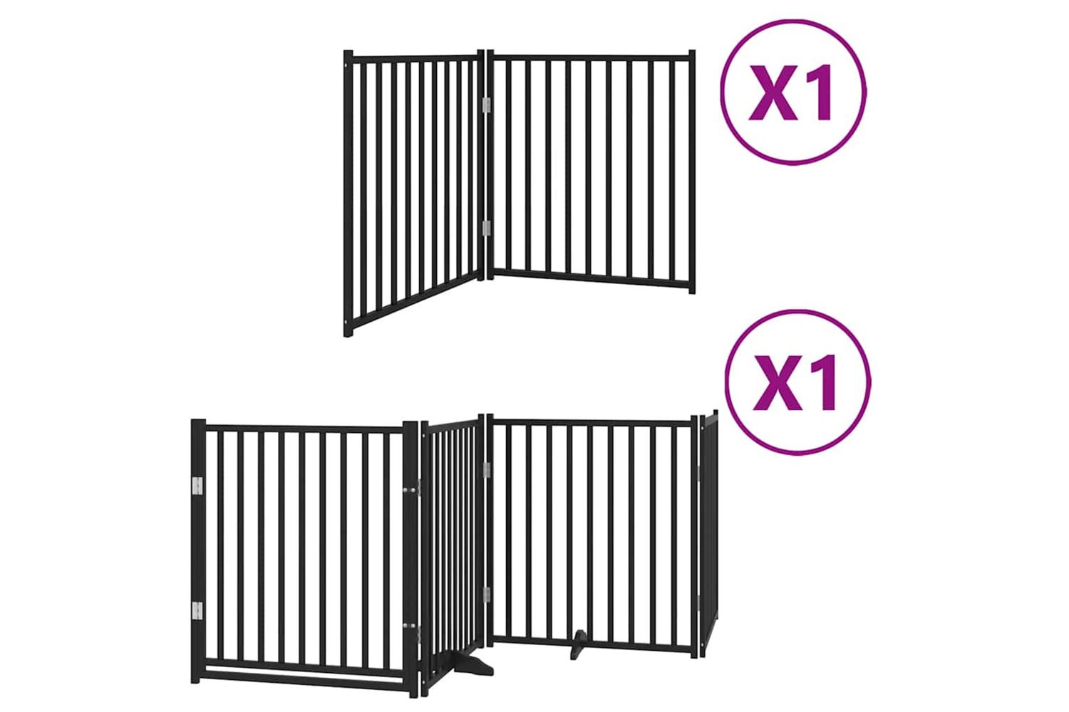 Vidaxl Dog Gate With Door Foldable 6 Panels Black 480 Cm Poplar Wood