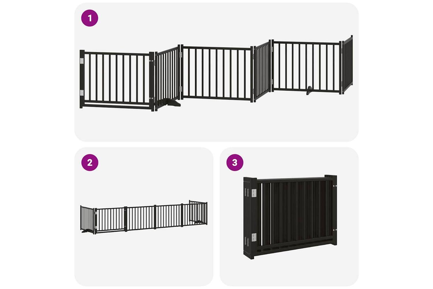 Vidaxl Dog Gate With Door Foldable 6 Panels Black 480 Cm Poplar Wood