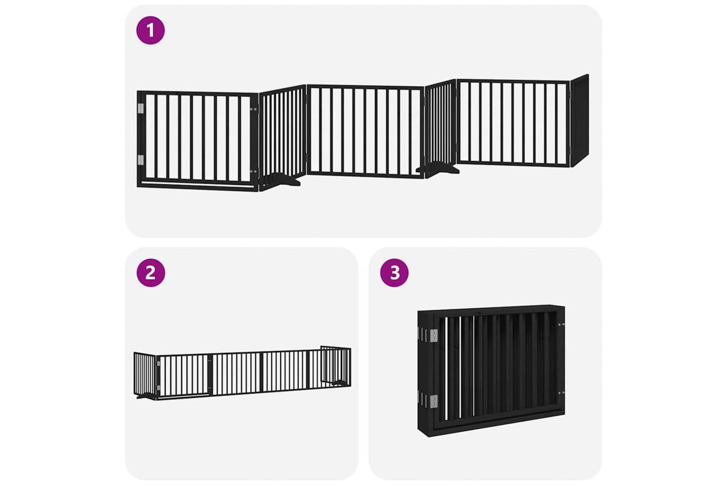 Vidaxl Dog Gate With Door Foldable 6 Panels Black 480 Cm Poplar Wood