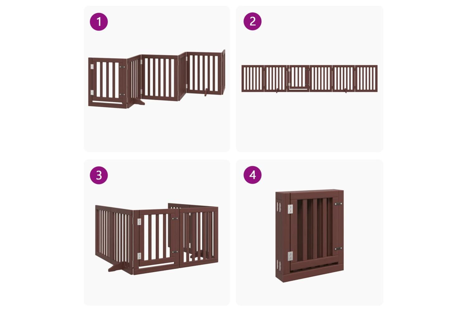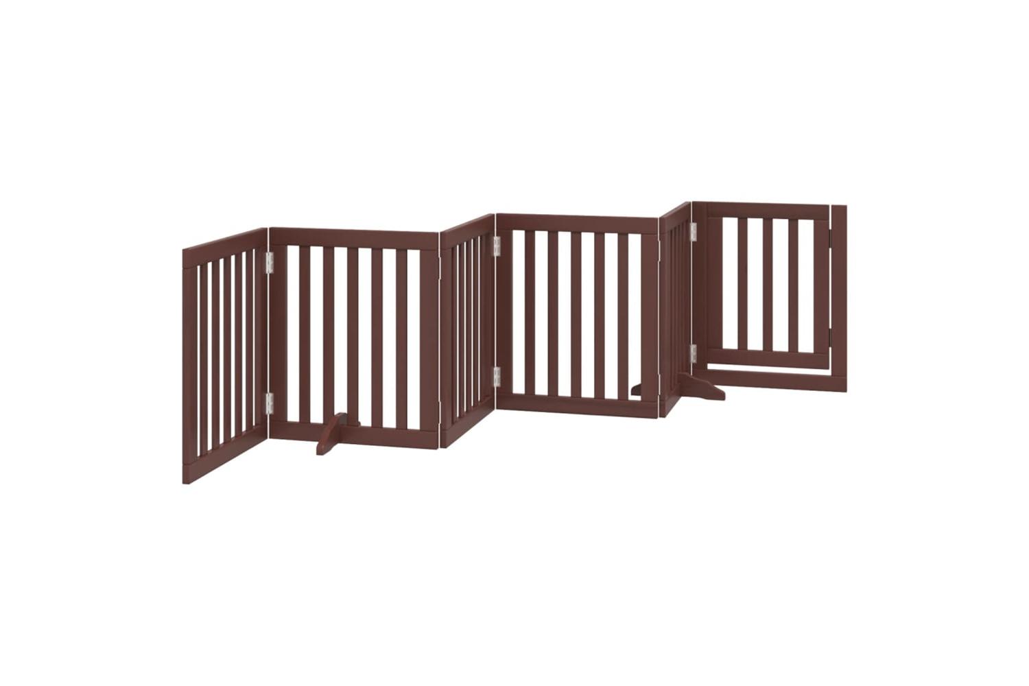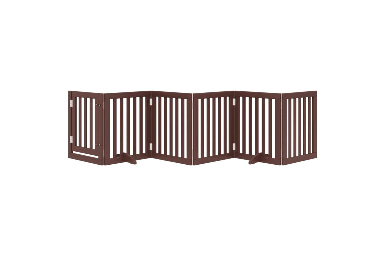 Vidaxl Dog Gate With Door Foldable 6 Panels Brown 300 Cm Poplar Wood