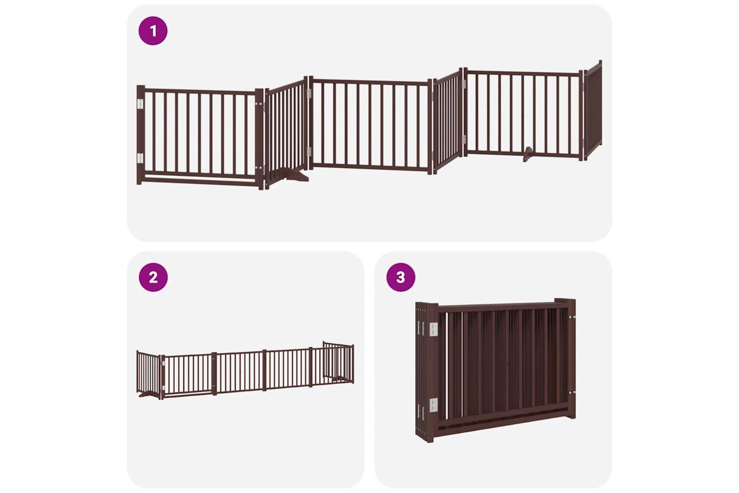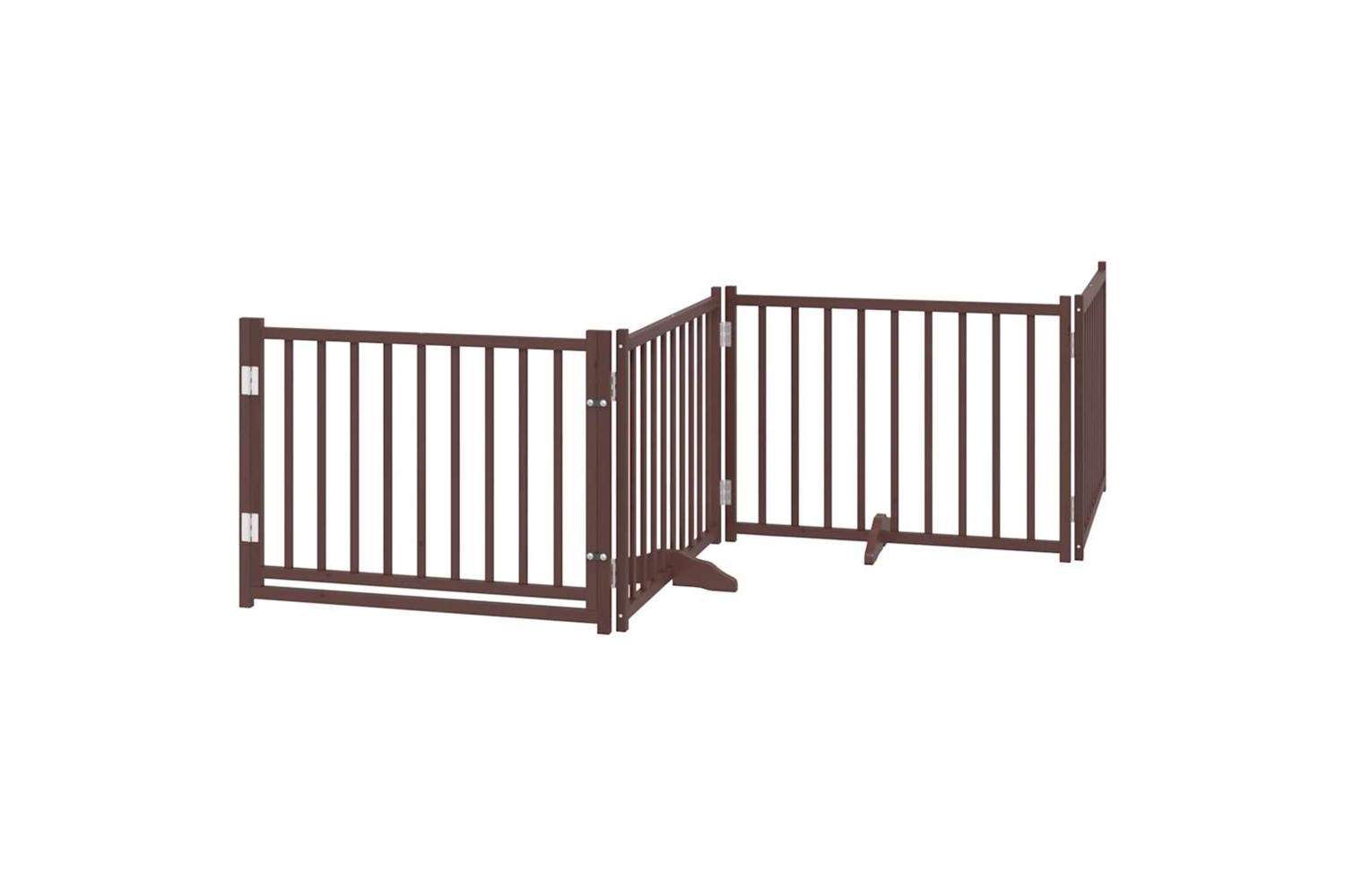 Vidaxl Dog Gate With Door Foldable 6 Panels Brown 480 Cm Poplar Wood