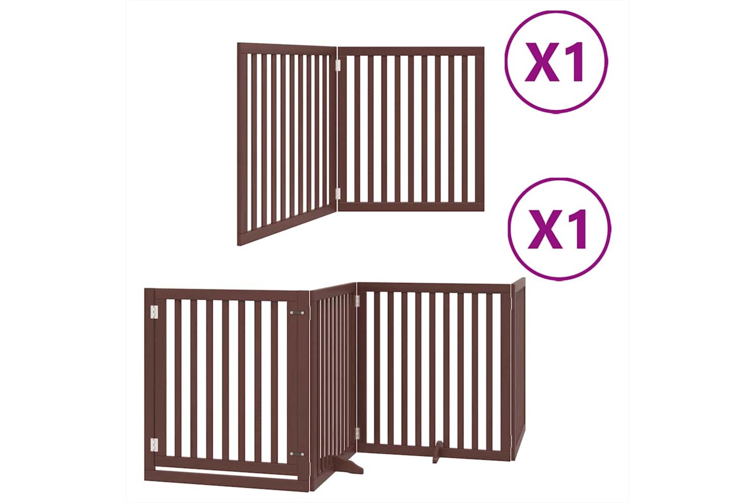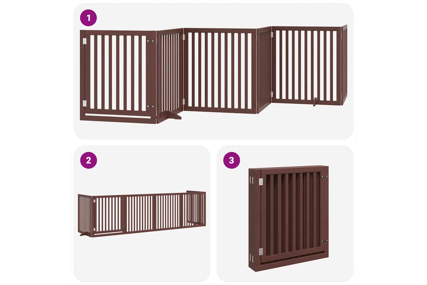 Vidaxl Dog Gate With Door Foldable 6 Panels Brown 480 Cm Poplar Wood
