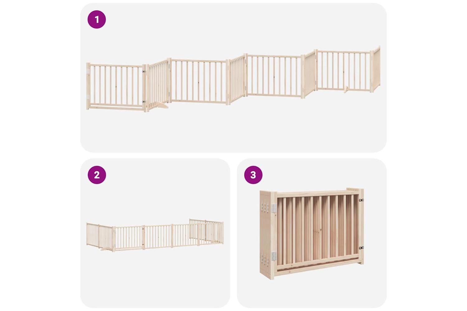 Vidaxl Dog Gate With Door Foldable 8 Panels 640 Cm Poplar Wood