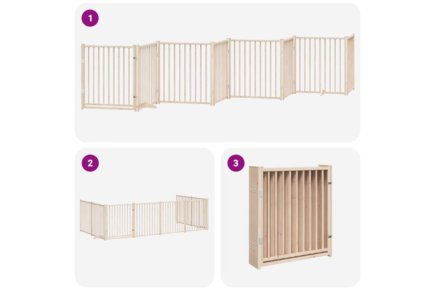 Vidaxl Dog Gate With Door Foldable 8 Panels 640 Cm Poplar Wood