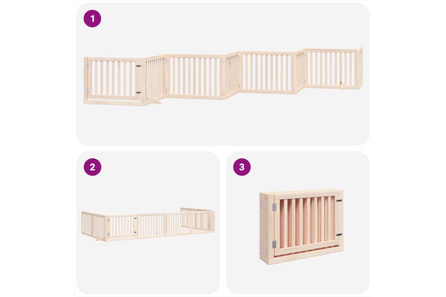 Vidaxl Dog Gate With Door Foldable 8 Panels 640 Cm Poplar Wood