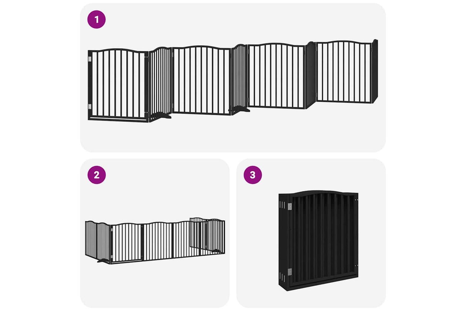 Vidaxl Dog Gate With Door Foldable 8 Panels Black 640 Cm Poplar Wood