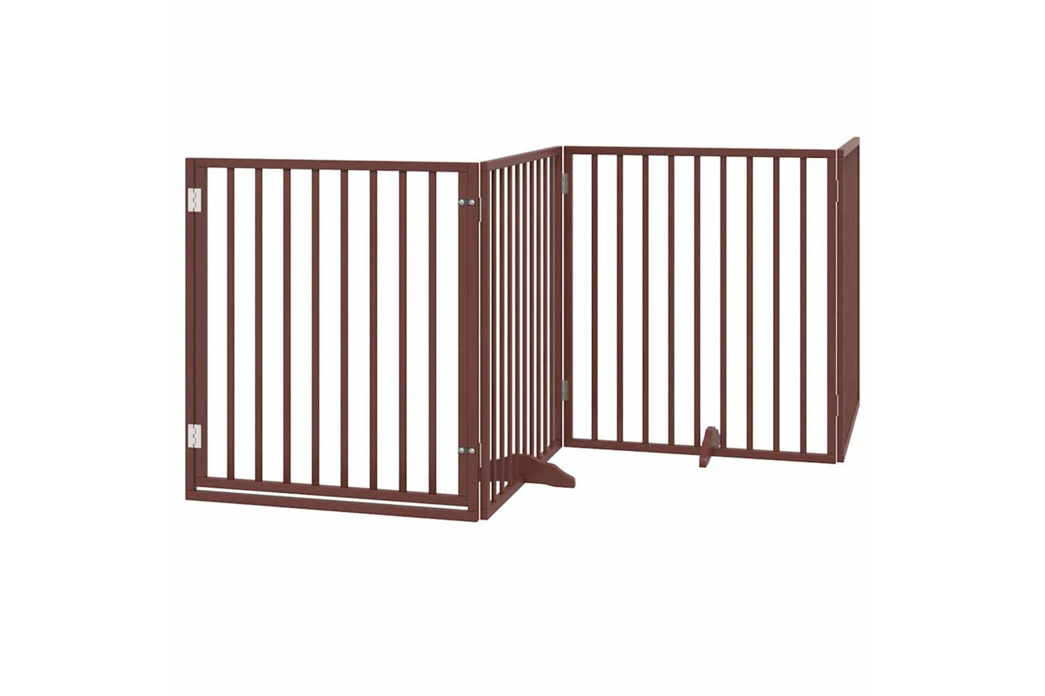 Vidaxl Dog Gate With Door Foldable 8 Panels Brown 640 Cm Poplar Wood