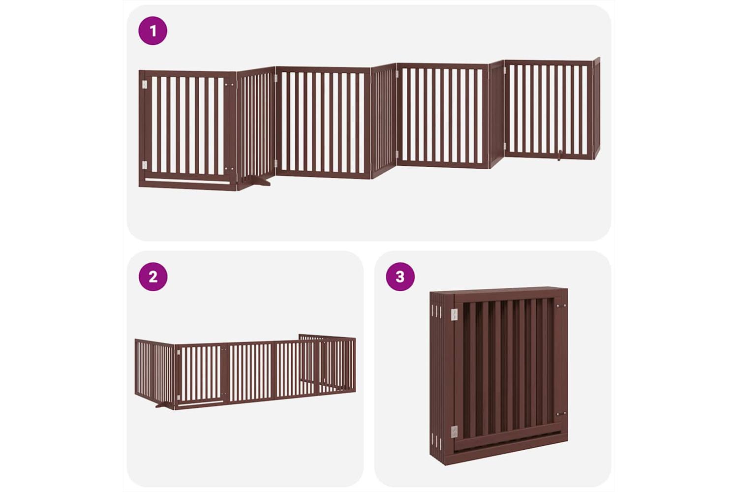 Vidaxl Dog Gate With Door Foldable 8 Panels Brown 640 Cm Poplar Wood