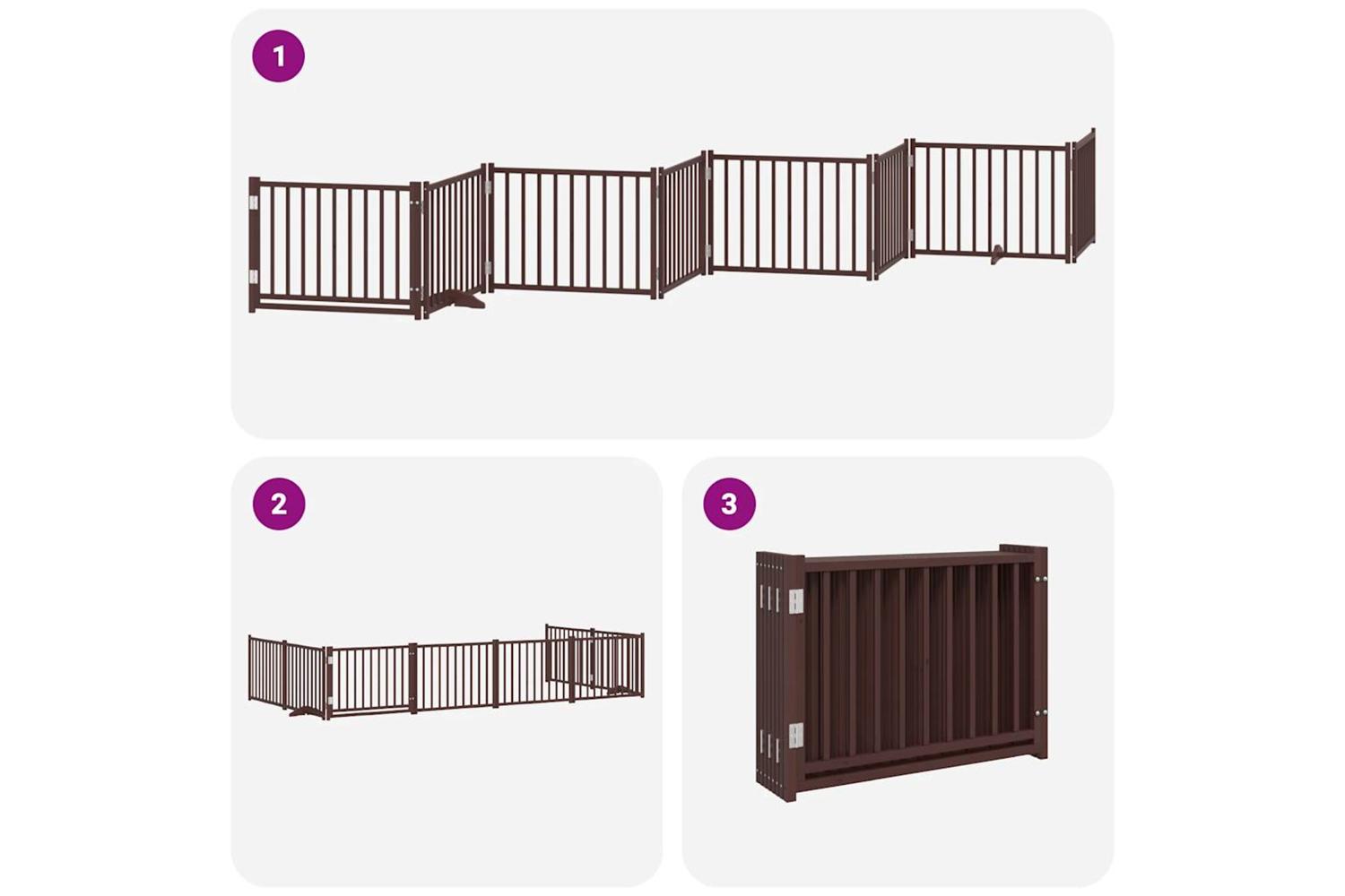 Vidaxl Dog Gate With Door Foldable 8 Panels Brown 640 Cm Poplar Wood