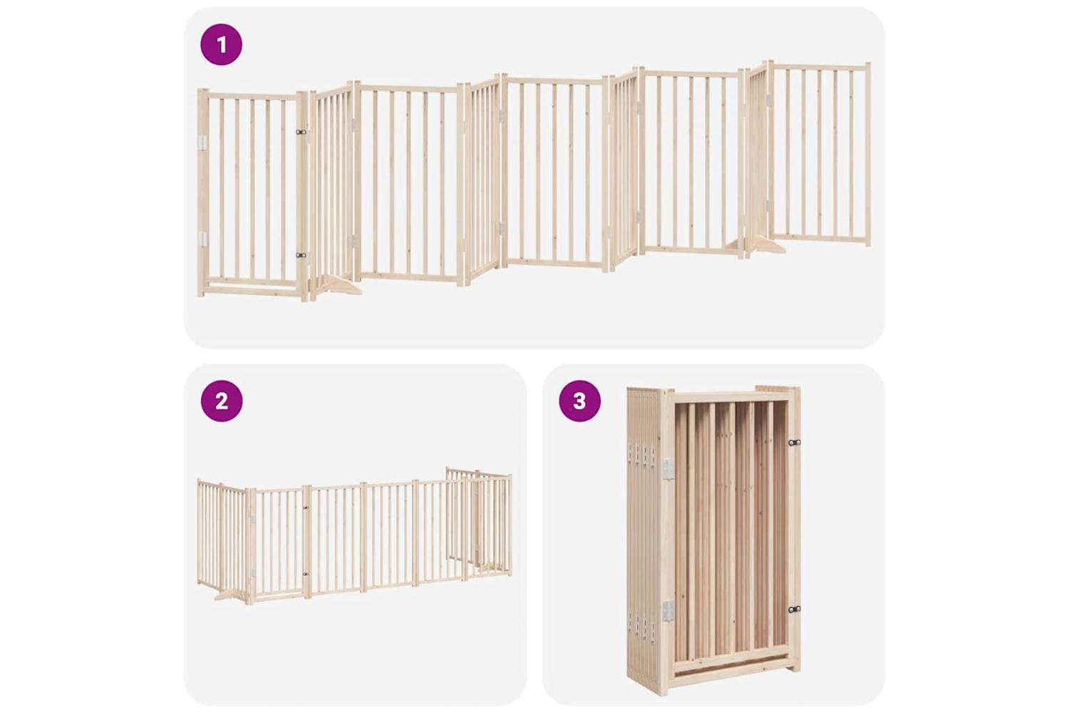 Vidaxl Dog Gate With Door Foldable 9 Panels 450 Cm Poplar Wood