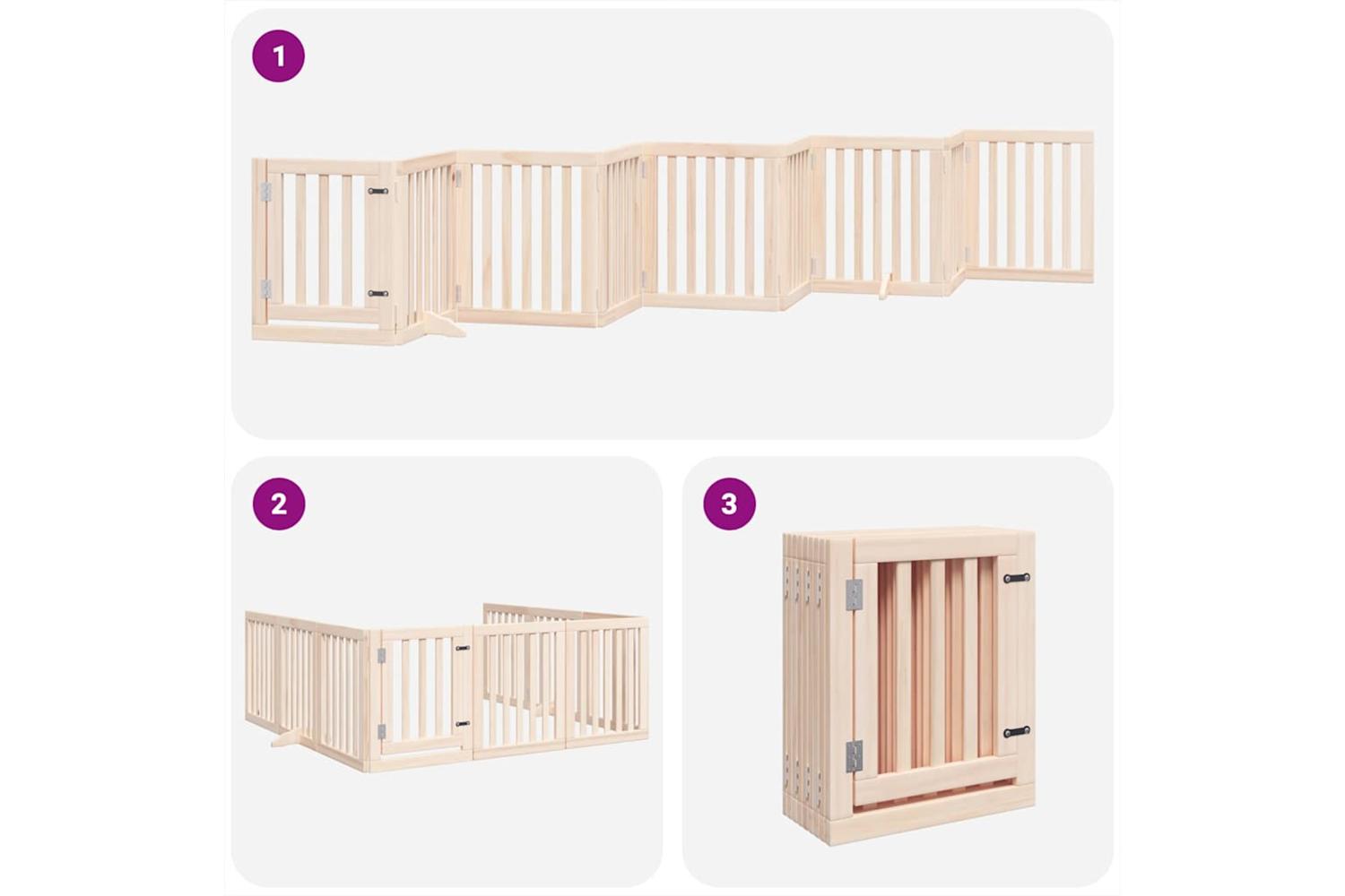 Vidaxl Dog Gate With Door Foldable 9 Panels 450 Cm Poplar Wood