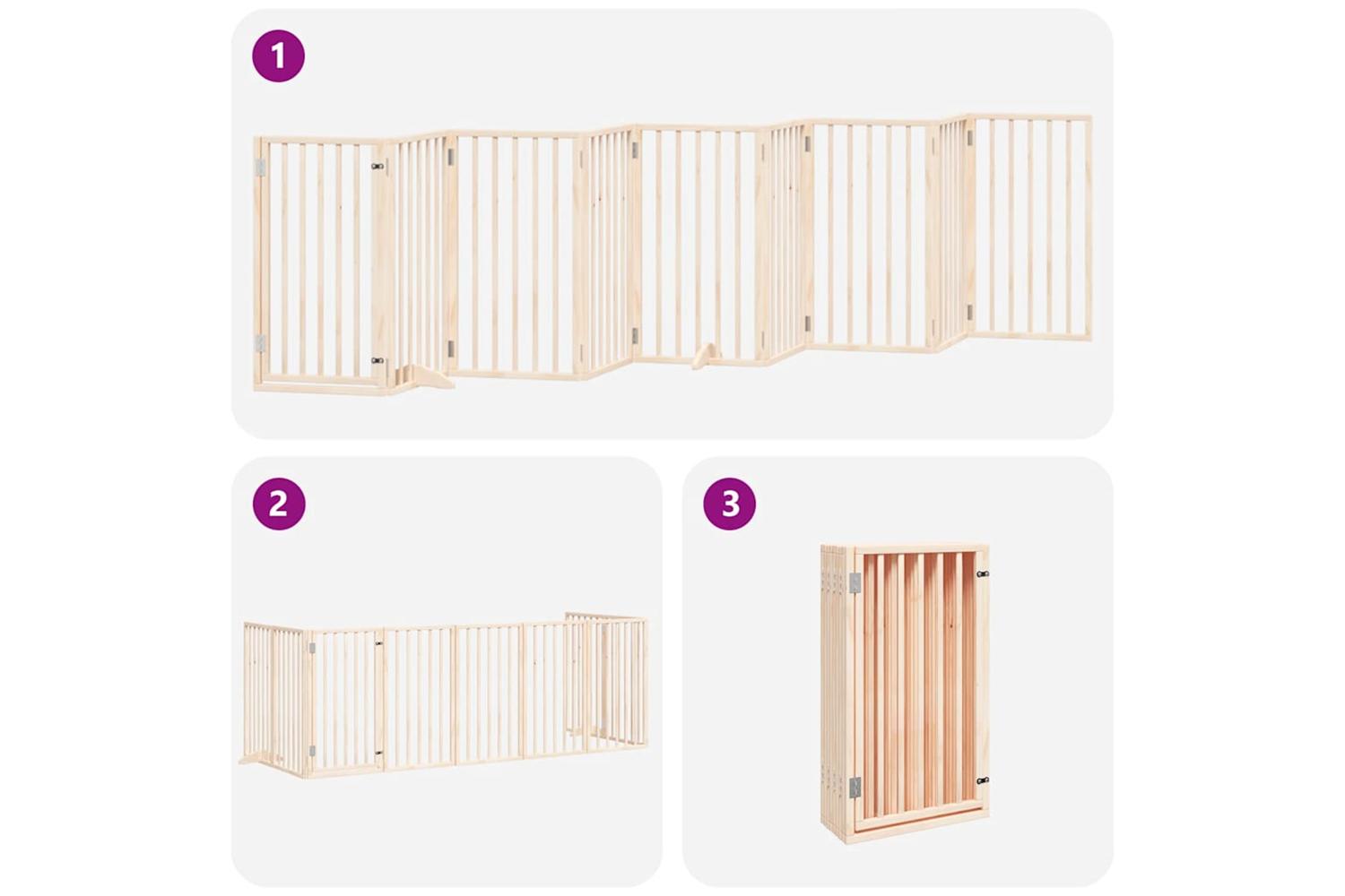 Vidaxl Dog Gate With Door Foldable 9 Panels 450 Cm Poplar Wood