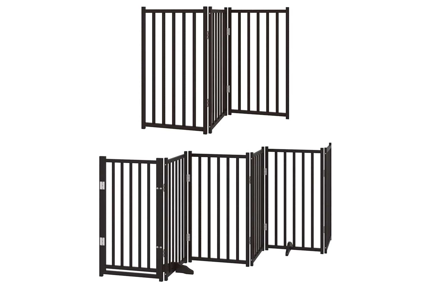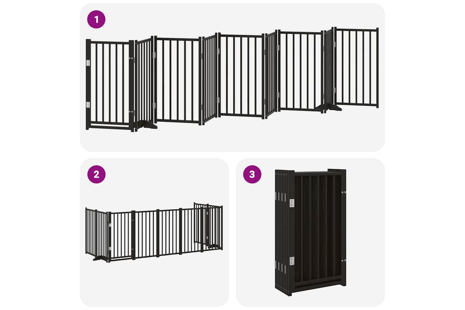 Vidaxl Dog Gate With Door Foldable 9 Panels Black 450 Cm Poplar Wood