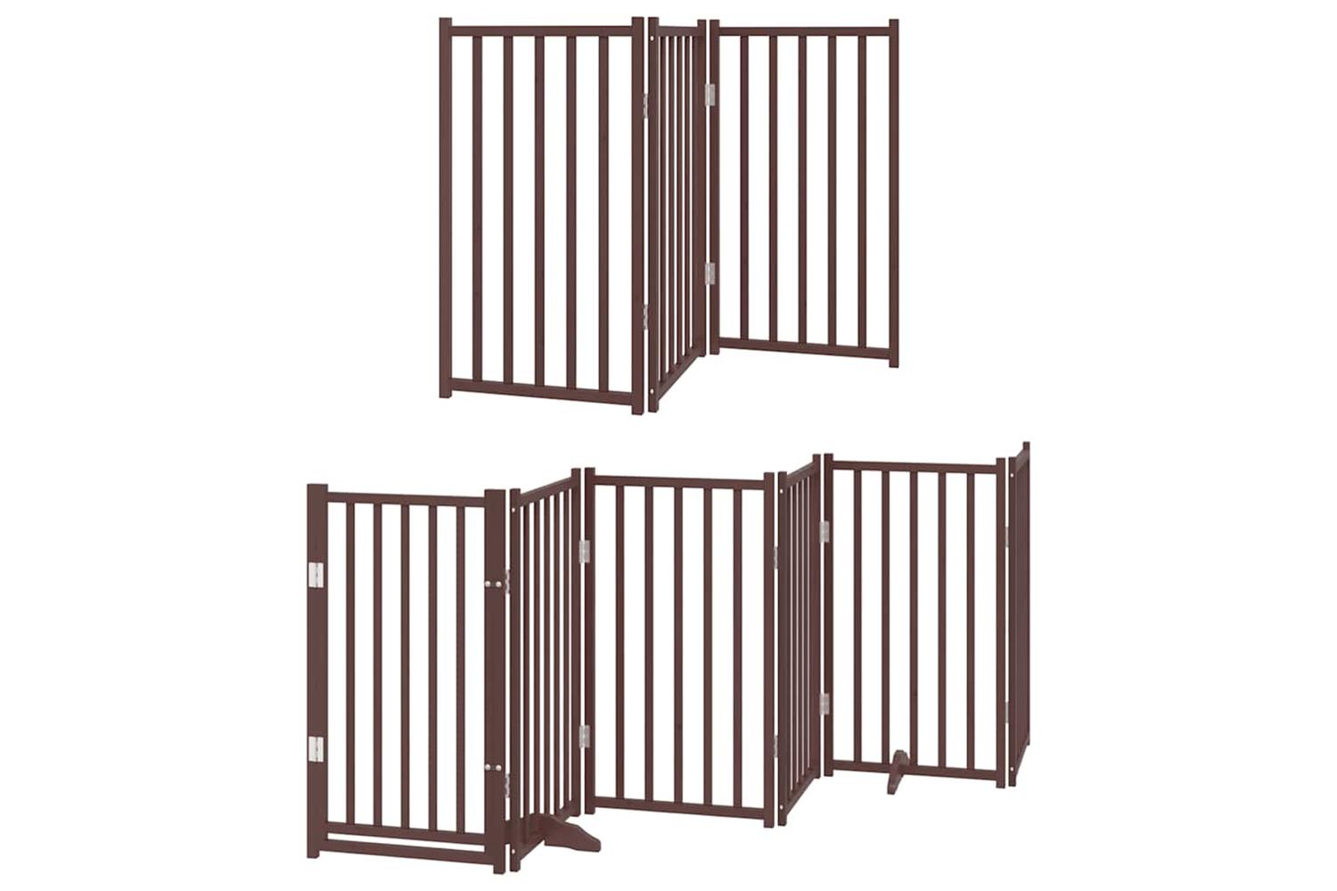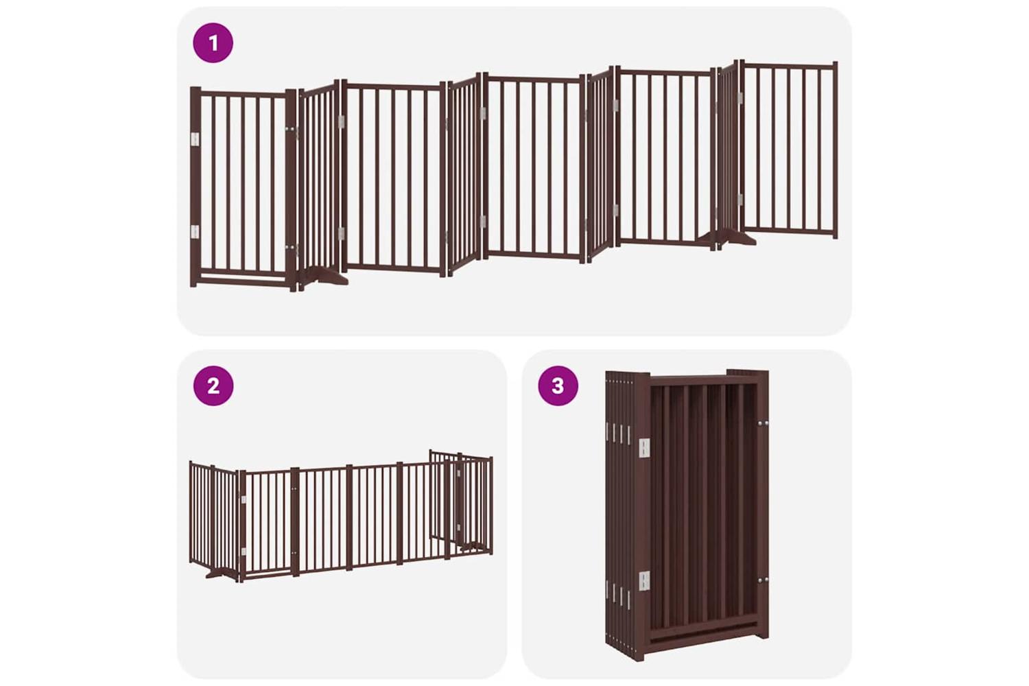 Vidaxl Dog Gate With Door Foldable 9 Panels Brown 450 Cm Poplar Wood