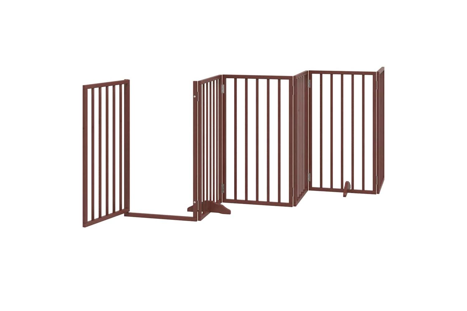 Vidaxl Dog Gate With Door Foldable 9 Panels Brown 450 Cm Poplar Wood