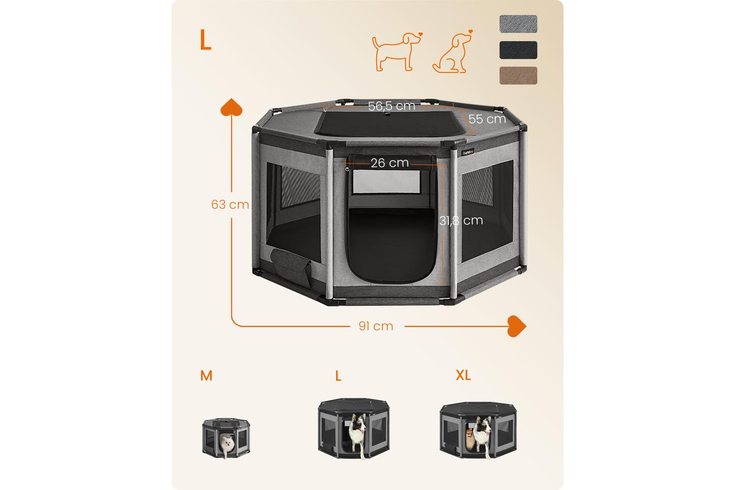With its generous 112 x 112 x 76 cm size, this playpen offers ample space for breeds like German Shepherds, Golden Retrievers, Huskies, and Akitas. The stylish dove gray-slate gray colour blends seamlessly with any home or garden, making it a practical and attractive addition to your pet care routine.
