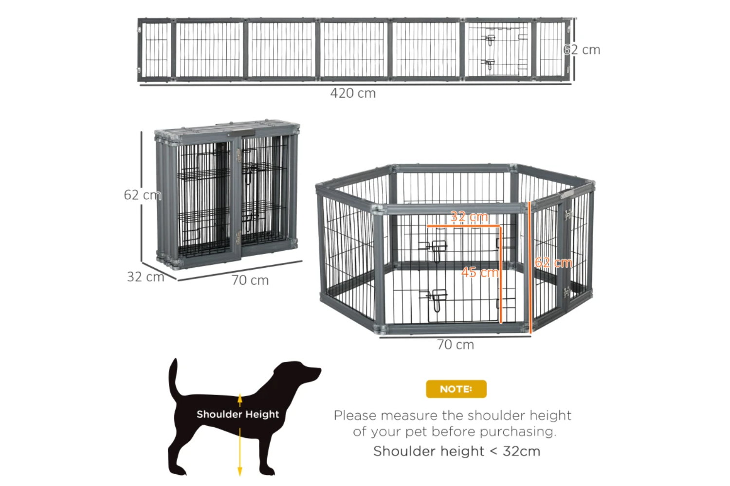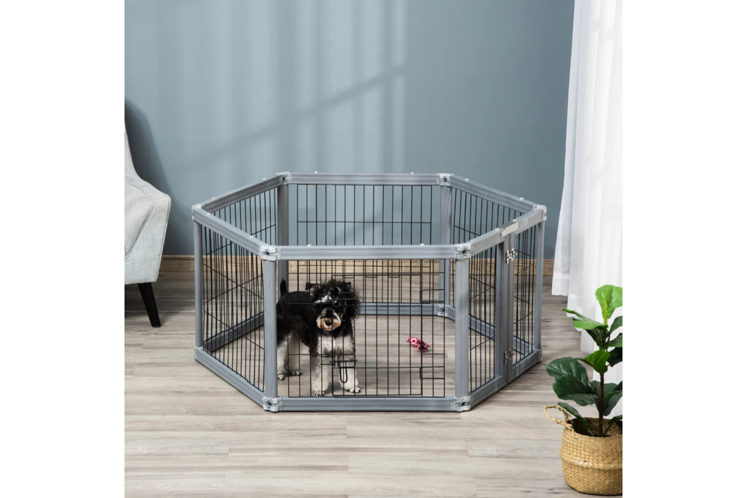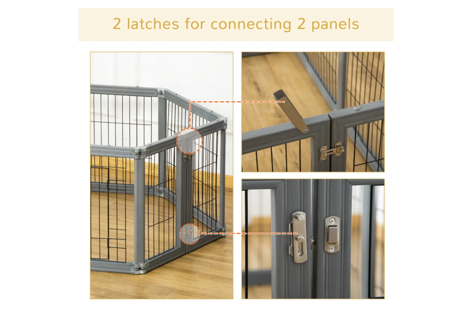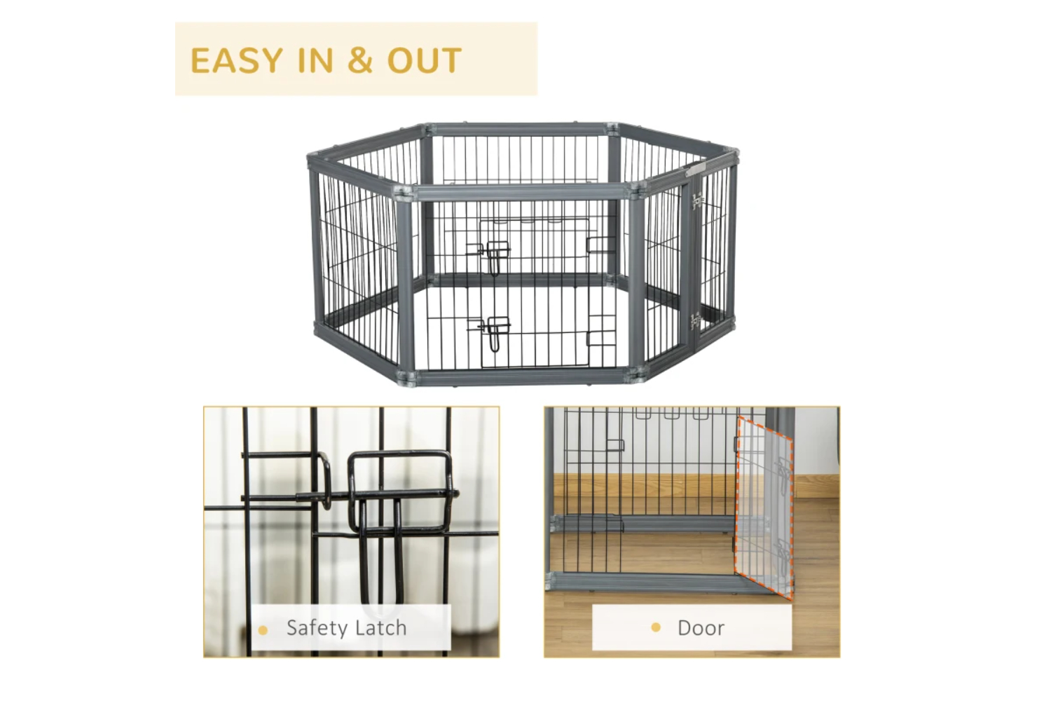The dog playpen from PawHut is composed of 6 panels which can be changed at will according to the layout of the home. Equipped with a door to facilitate pets in and out, and lock latch is set to protect the safety. The spacious interior space for pet rest and exercise. It is a convenient and practical pet enclosure that can be applied to both indoor and outdoor activities. You can use it to restrict your pet's activity area or to separate different pets. A good puppy playpen for your pets!