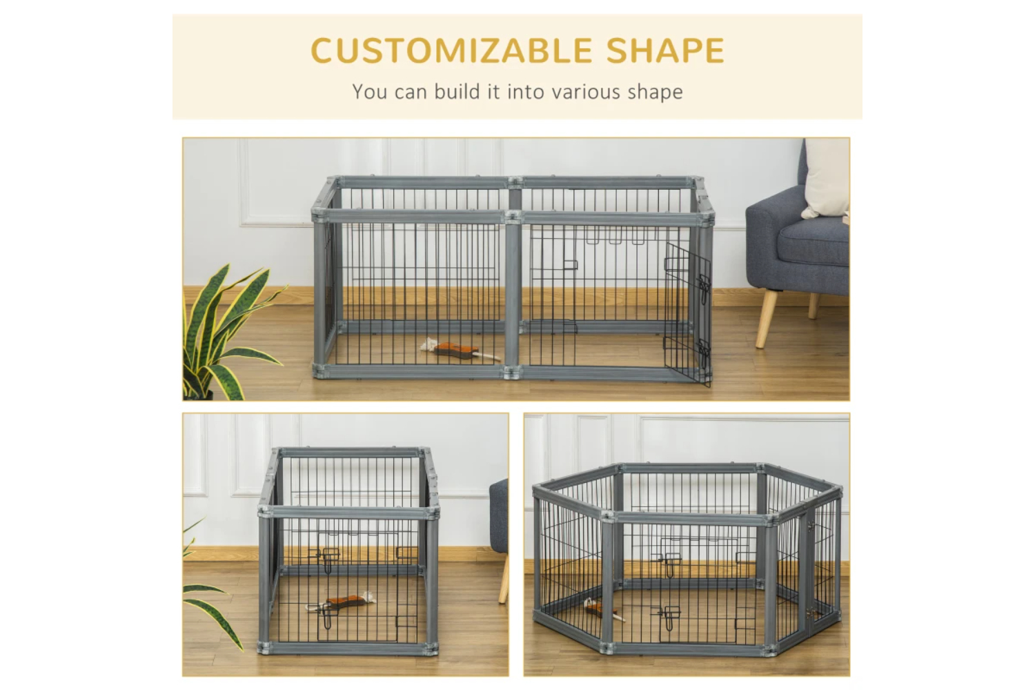 - 6 panels puppy pen can be set up in L shape, U shape, or hexagon