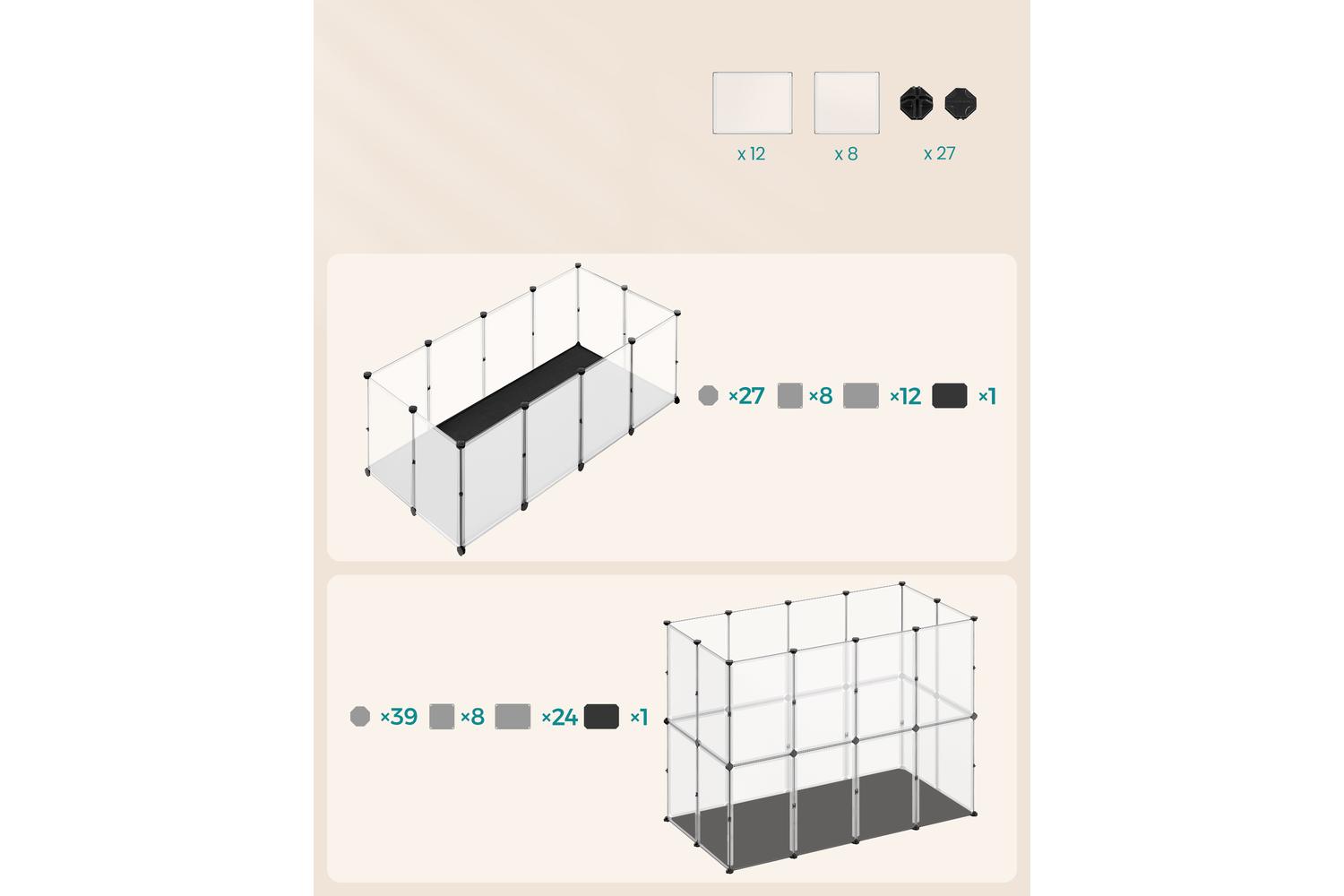 Give your small pets the freedom to play, explore, and relax in a safe, spacious environment with the Pet Fence LPC011W01 from SONGMICS. Designed for Irish pet owners who want the best for their furry friends, this versatile pet playpen is perfect for guinea pigs, hamsters, hedgehogs, and rabbits. Its generous surface area ensures your pets have plenty of room to roam, while the smooth, escape-proof panels keep them secure and happy.