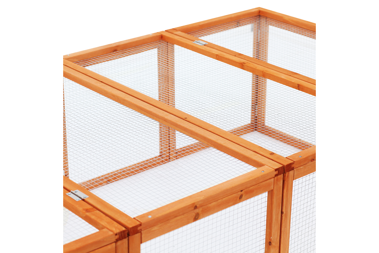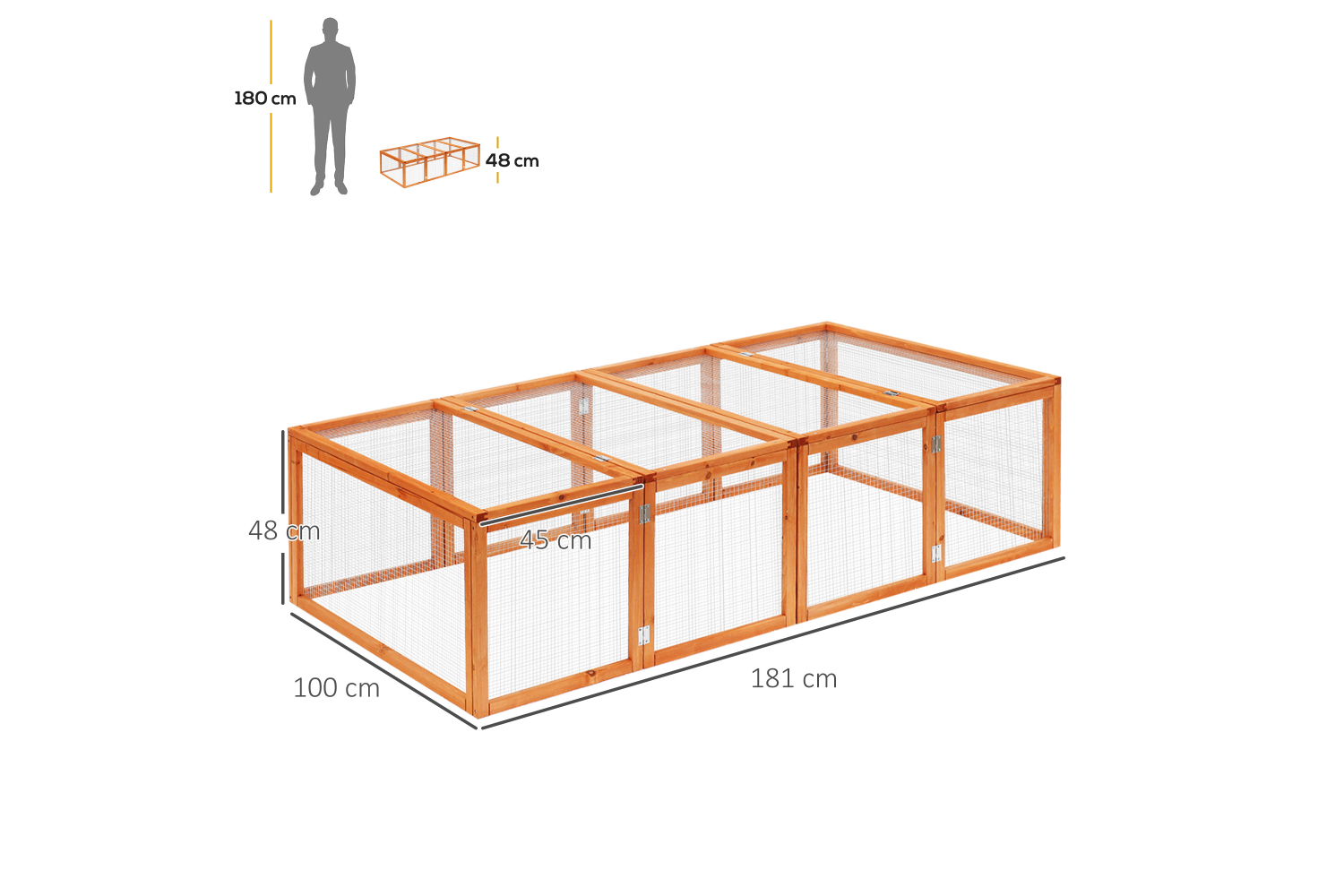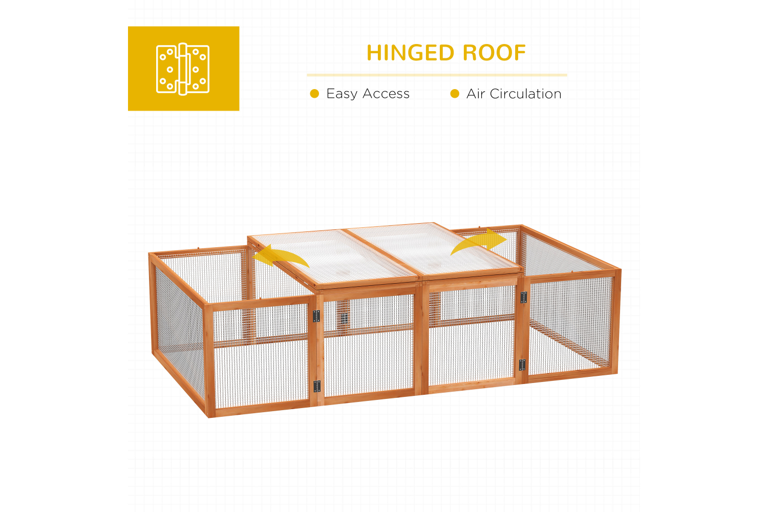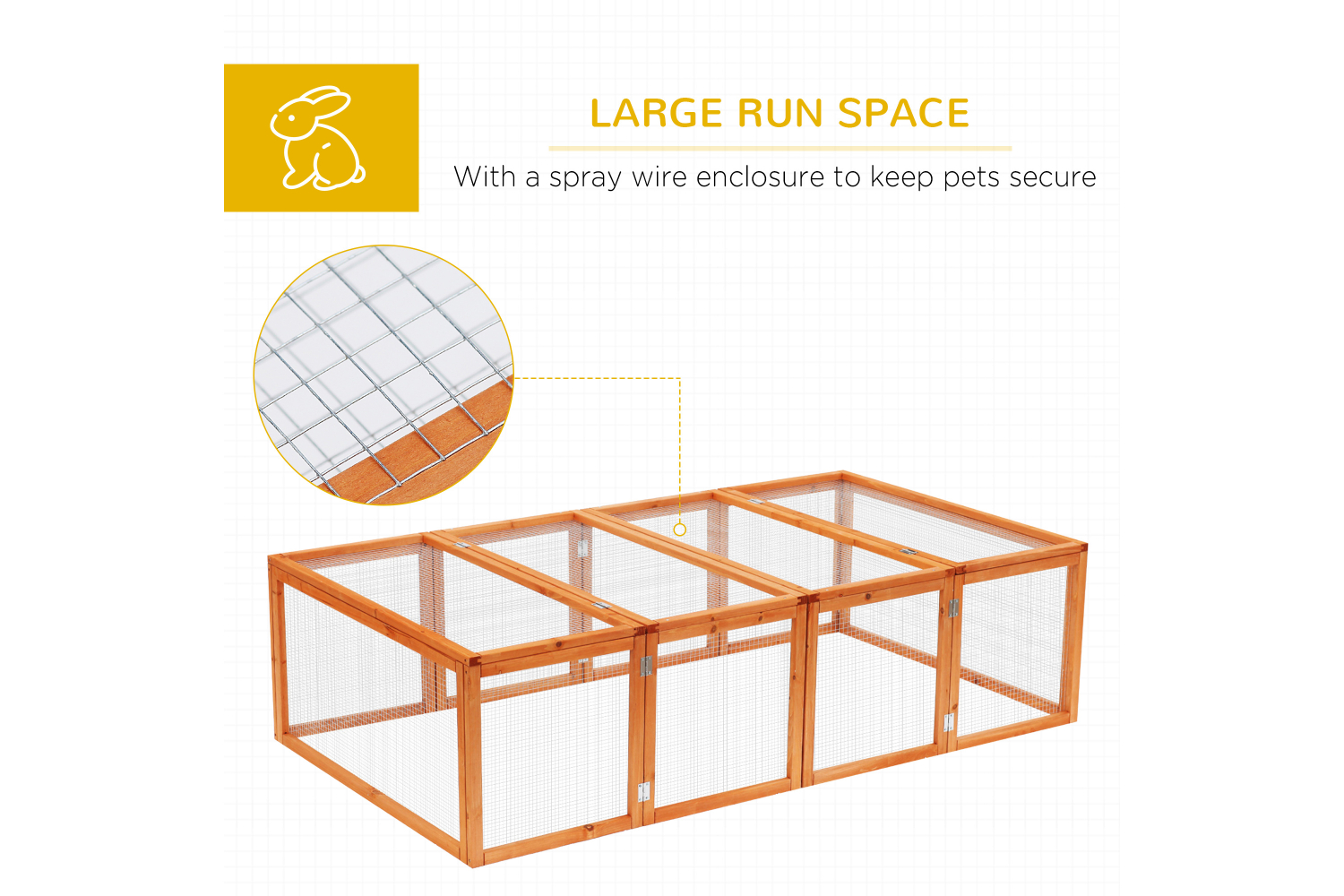 PawHut offers an ideal solution to let your small pets run and play outdoors without worrying about their safety. The Rabbit Hutch offers running and play area with two access doors on top. The design is bottom less to enable pets to feel the grass. An ideal way to safely shelter your loved small pets from various elements.